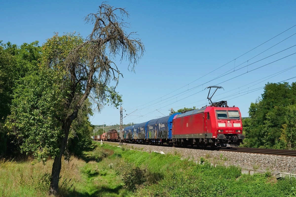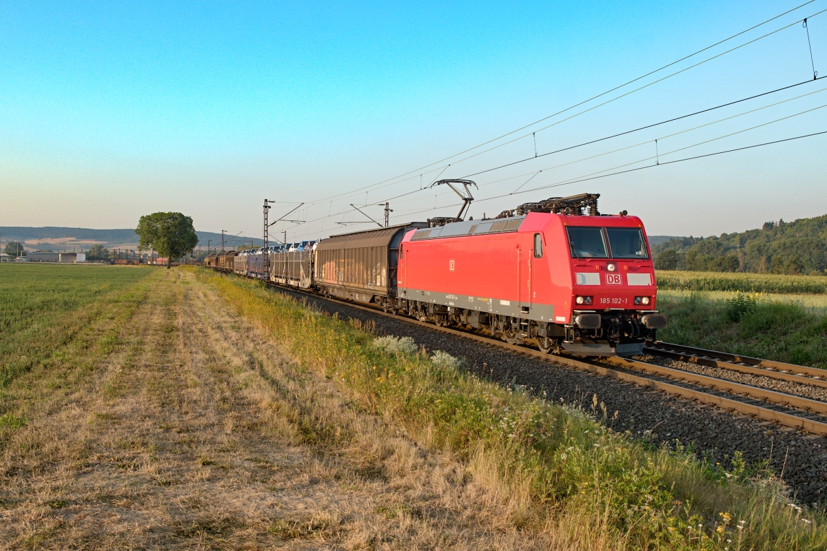 Dto. 185 102-1 am 18.08.2023 bei Gossmannsdorf (NGOD) mit einem EZ Rtg.
