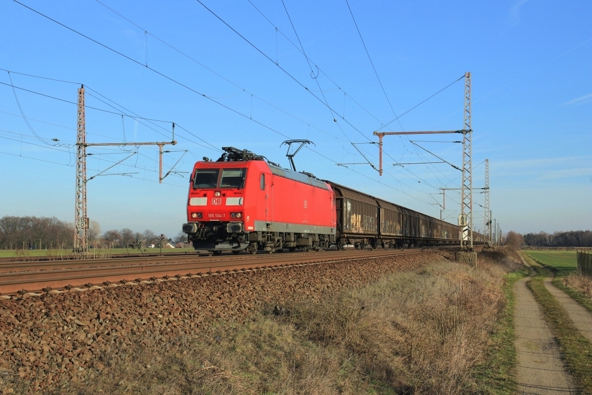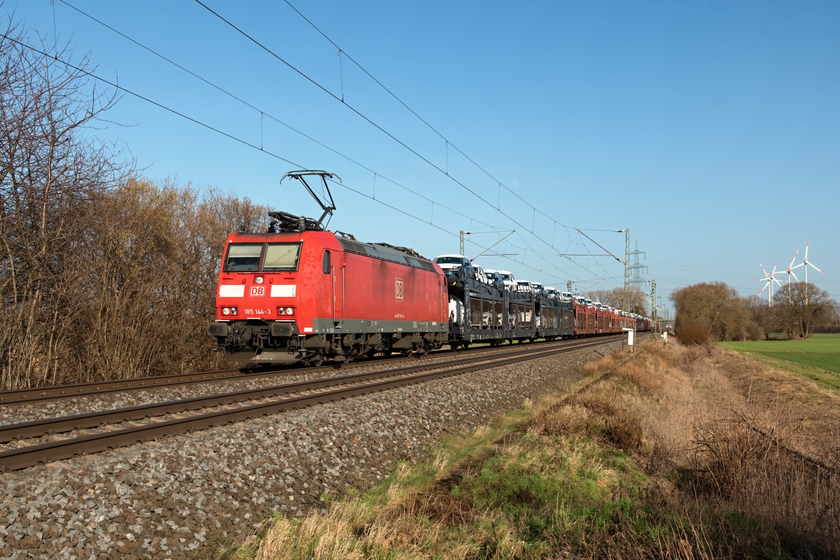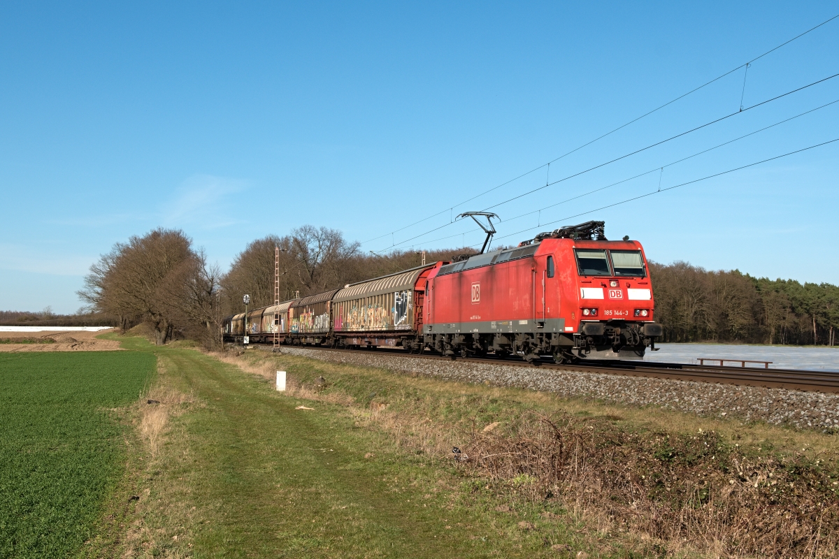Dto. 185 144-3 am 24.02.2021 bei Lindhorst (HLH) mit einem Schenker Voll-GA