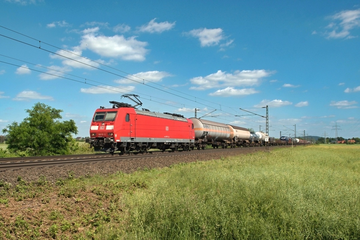 Dto. 185 142-7 am 13.05.2020 als Tfzf bei Bückeburg (HBKB) Evesen mit