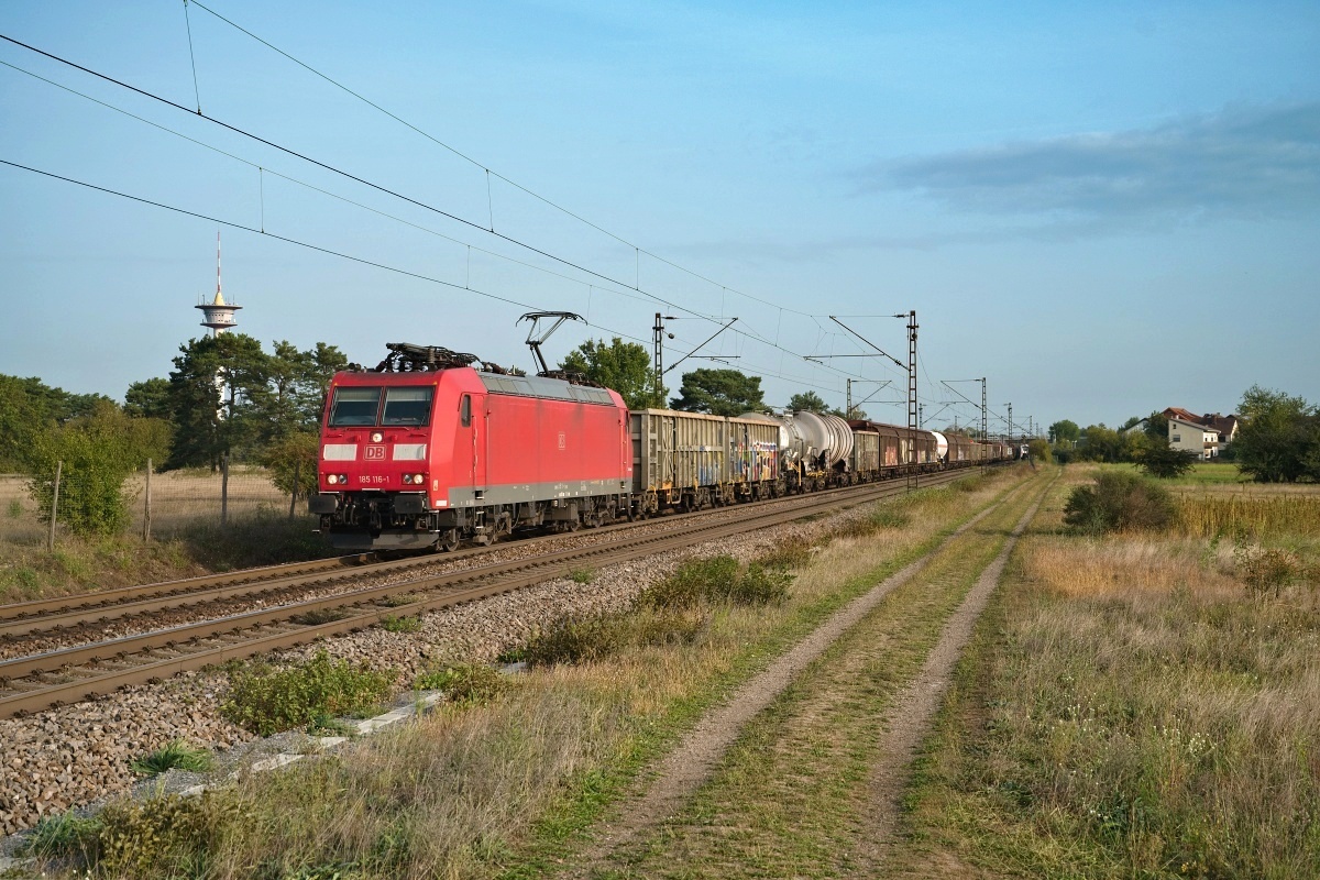 Dto. 185 087-4 morgens am 28.09.2023 bei Klein-Gerau (FKGE) mit einem