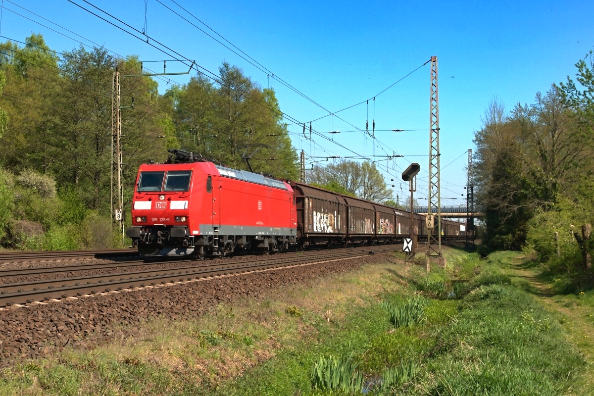 185 143-5 (NVR: 91806 185 143-5 D-DB) war hier am 23.04.2021 bei Bückeburg (HBKB) Evesen mit einem EZ. Rtg.