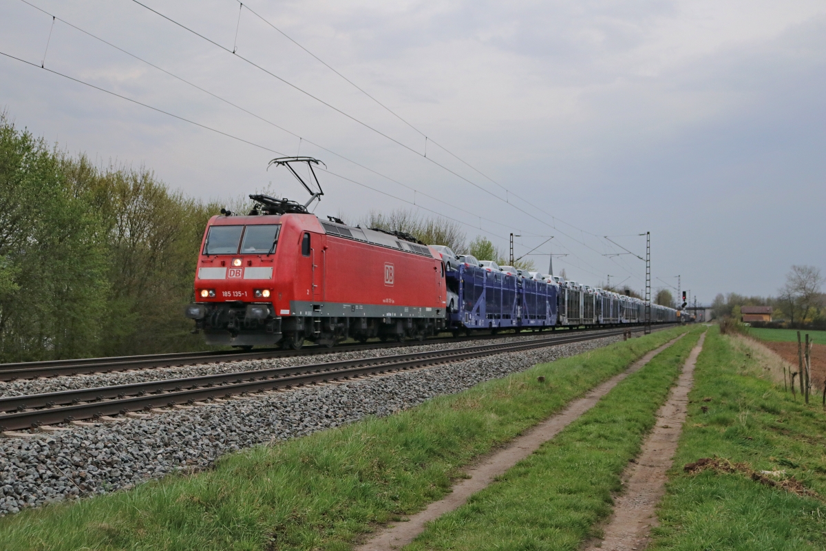 am 10.04.2018 bei Thüngersheim (NTHM) mit einem voll beladenen Autozug Rtg.