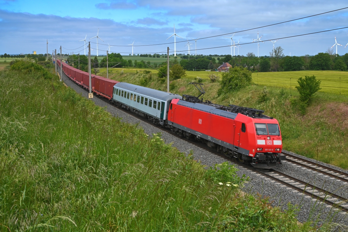 Dto. 185 146-8 am 01.06.2023 bei Ovelgünne (LOV) mit einem Militär