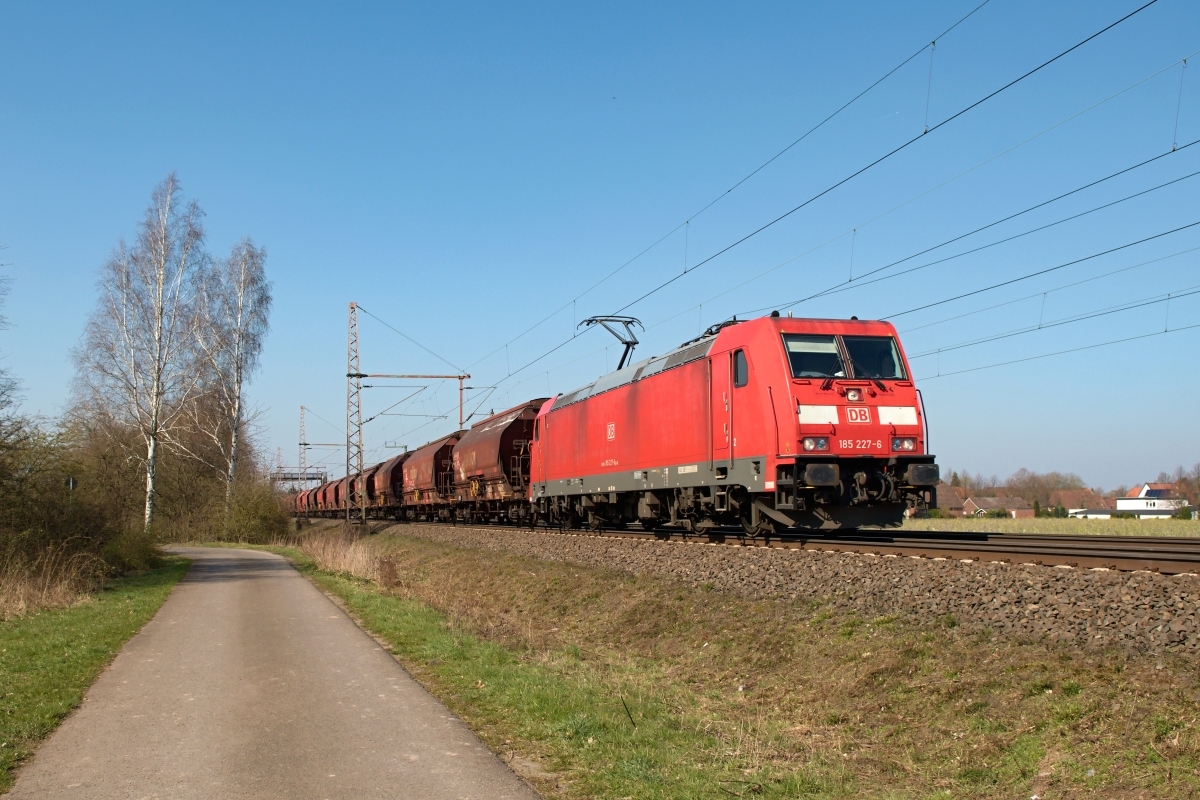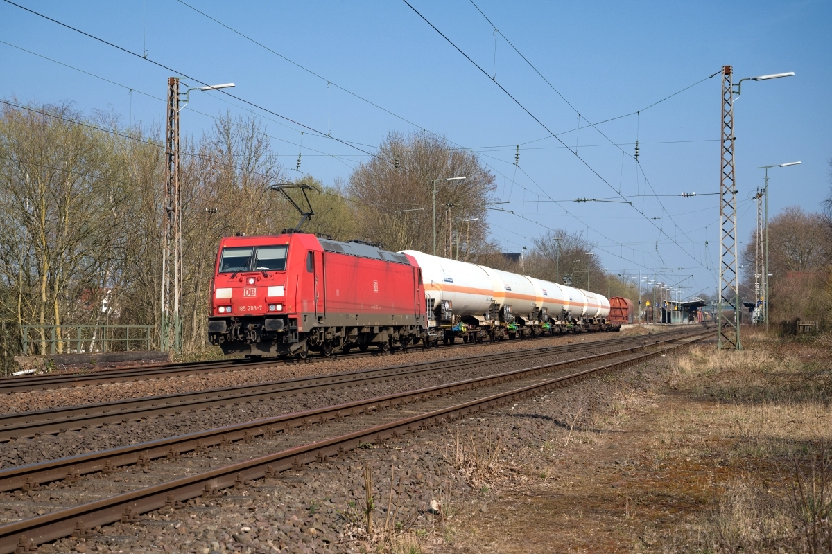 Dto. 185 203-7 am 25.03.2022 im Bückeburger Bf (HBKB) mit einem EZ Rtg.