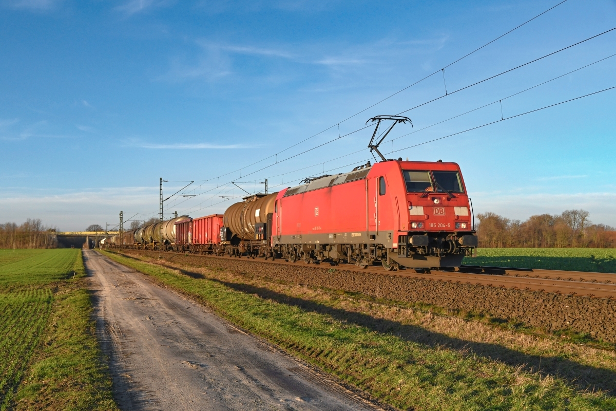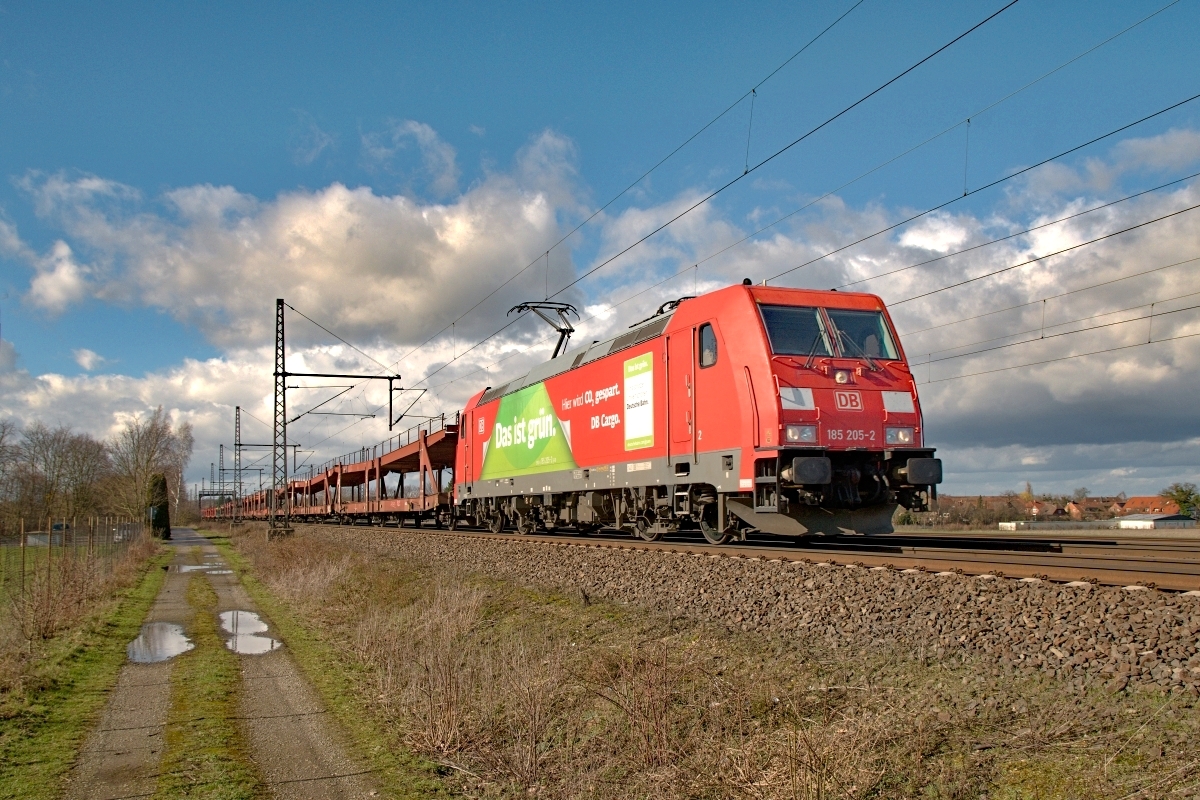Dto. 185 205-2 am 25.02.2020. Die Lok war hier bei Dedensen-Gümmer mit dem GA Leerzug 50781 von