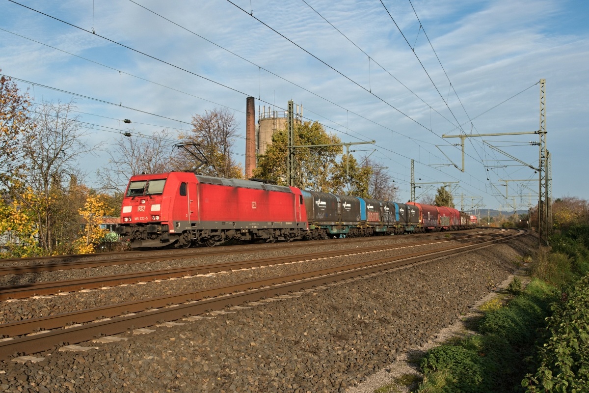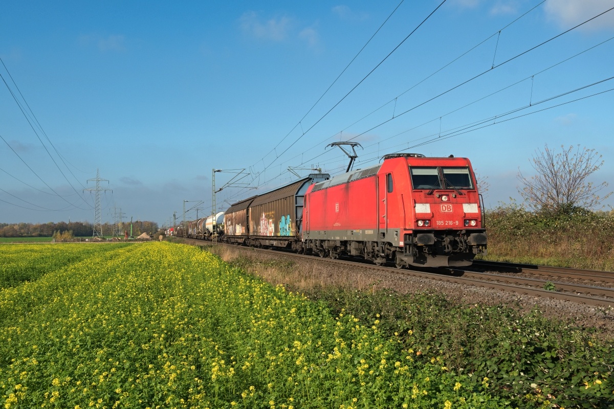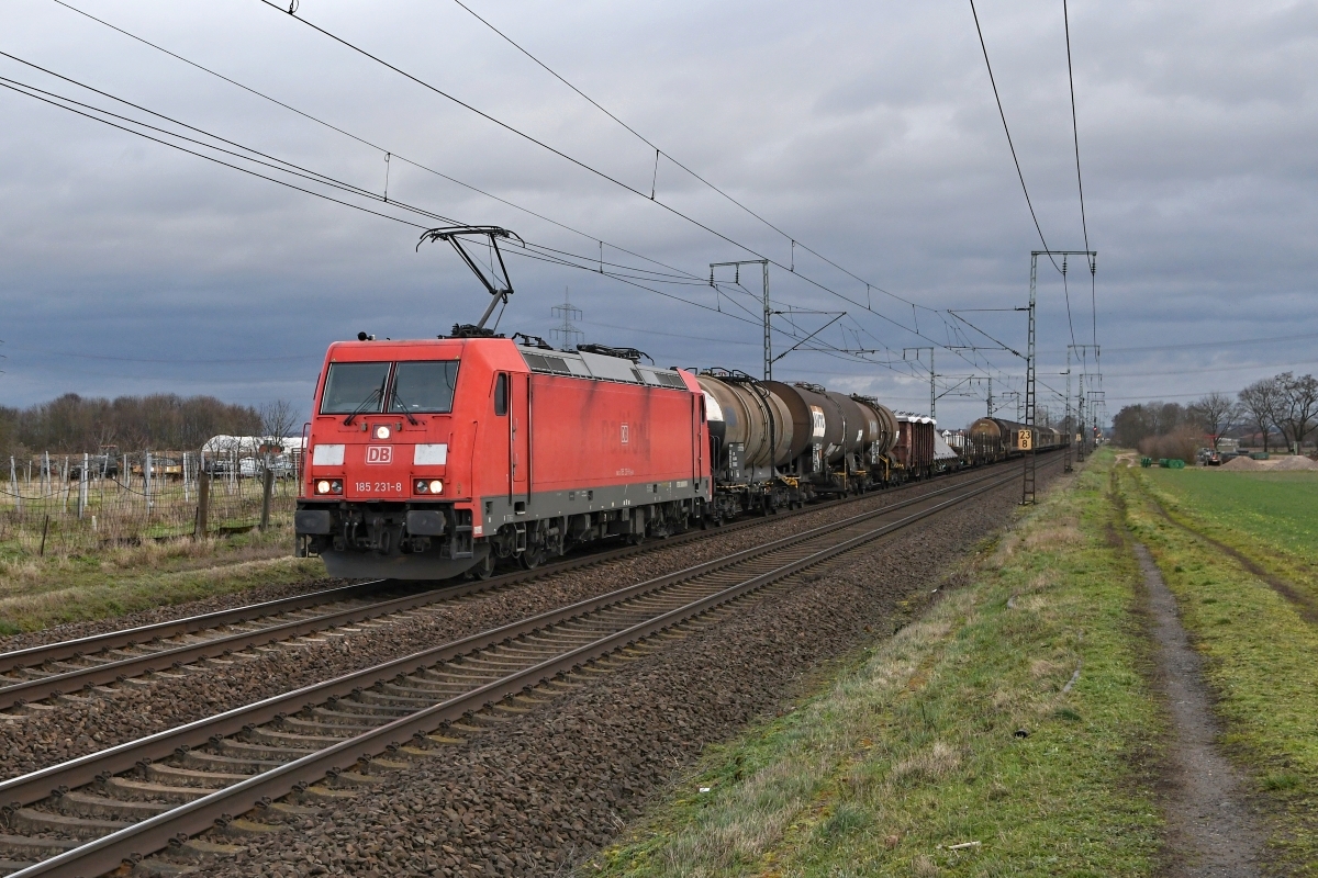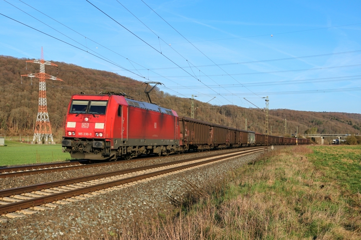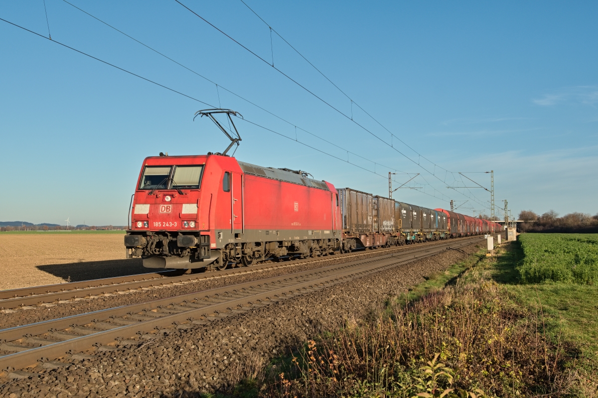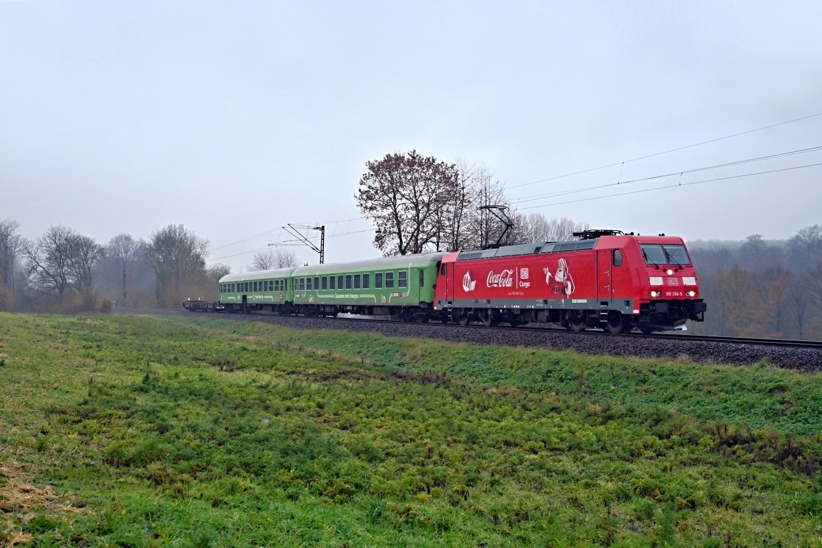 Dto. 185 204-5 bei diesigem Wetter und Nieselregen am 23.11.2023 kurz vor