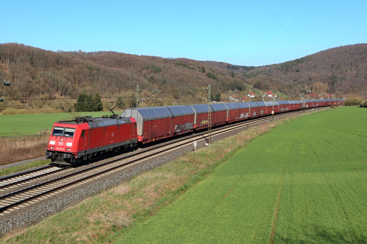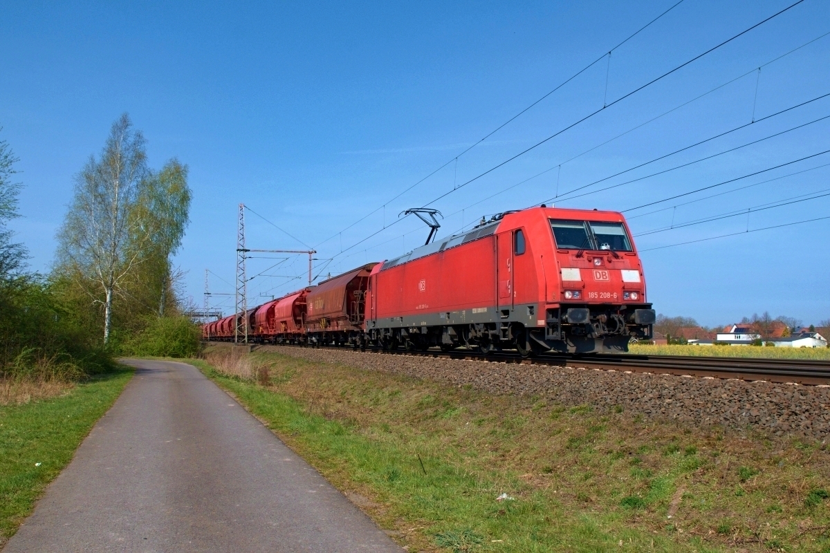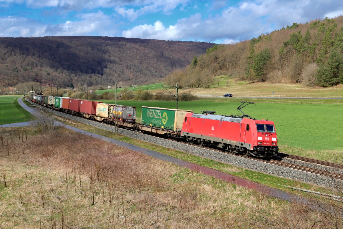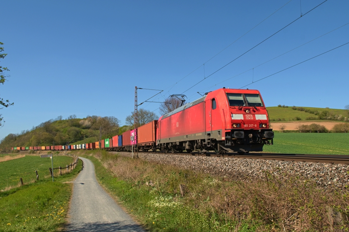 Dto. 185 207-8 am 17.04.2020 südlich von Freden "an der Bahn" mit dem KT
