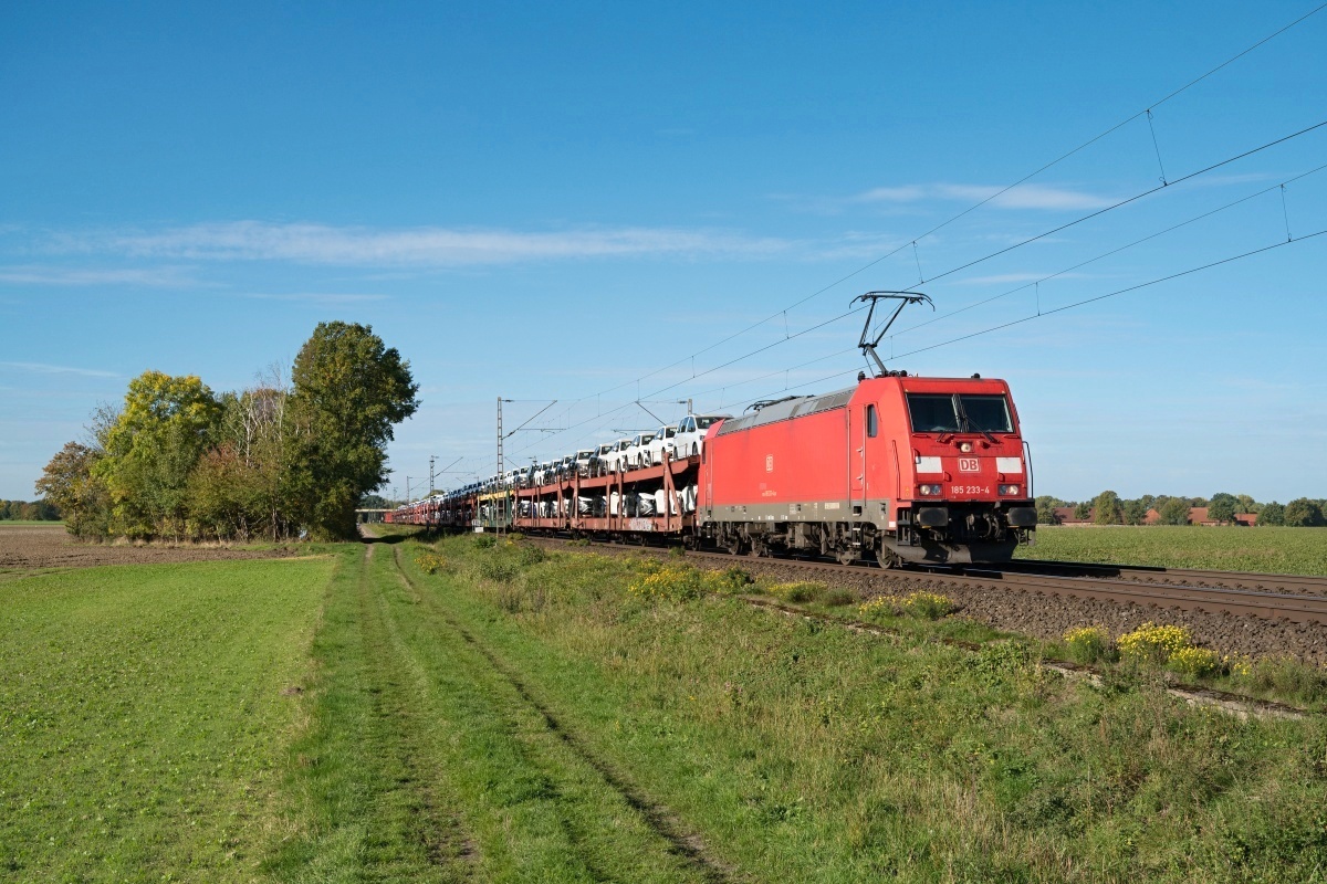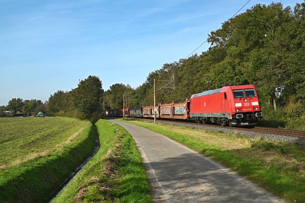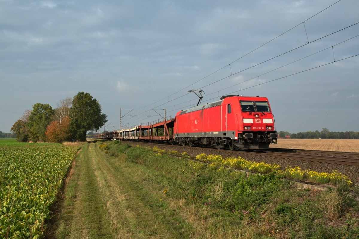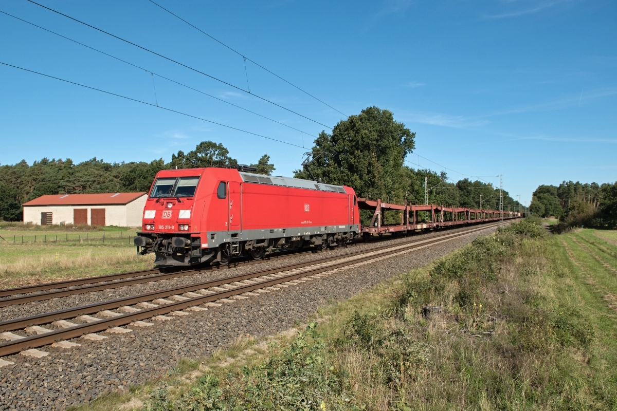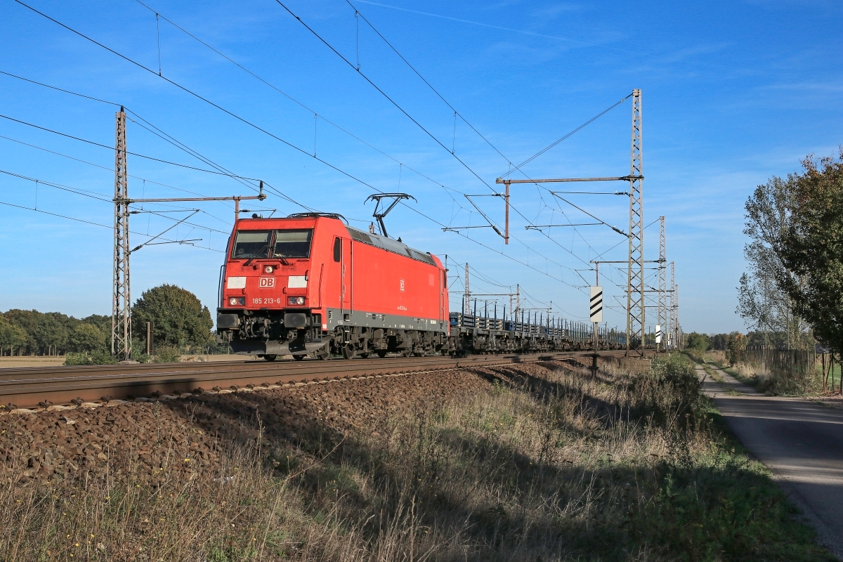 Dto. 185 207-8 am 30.09.2020 bei Lindhorst (HLH) Vornhagen mit dem Leer-GA