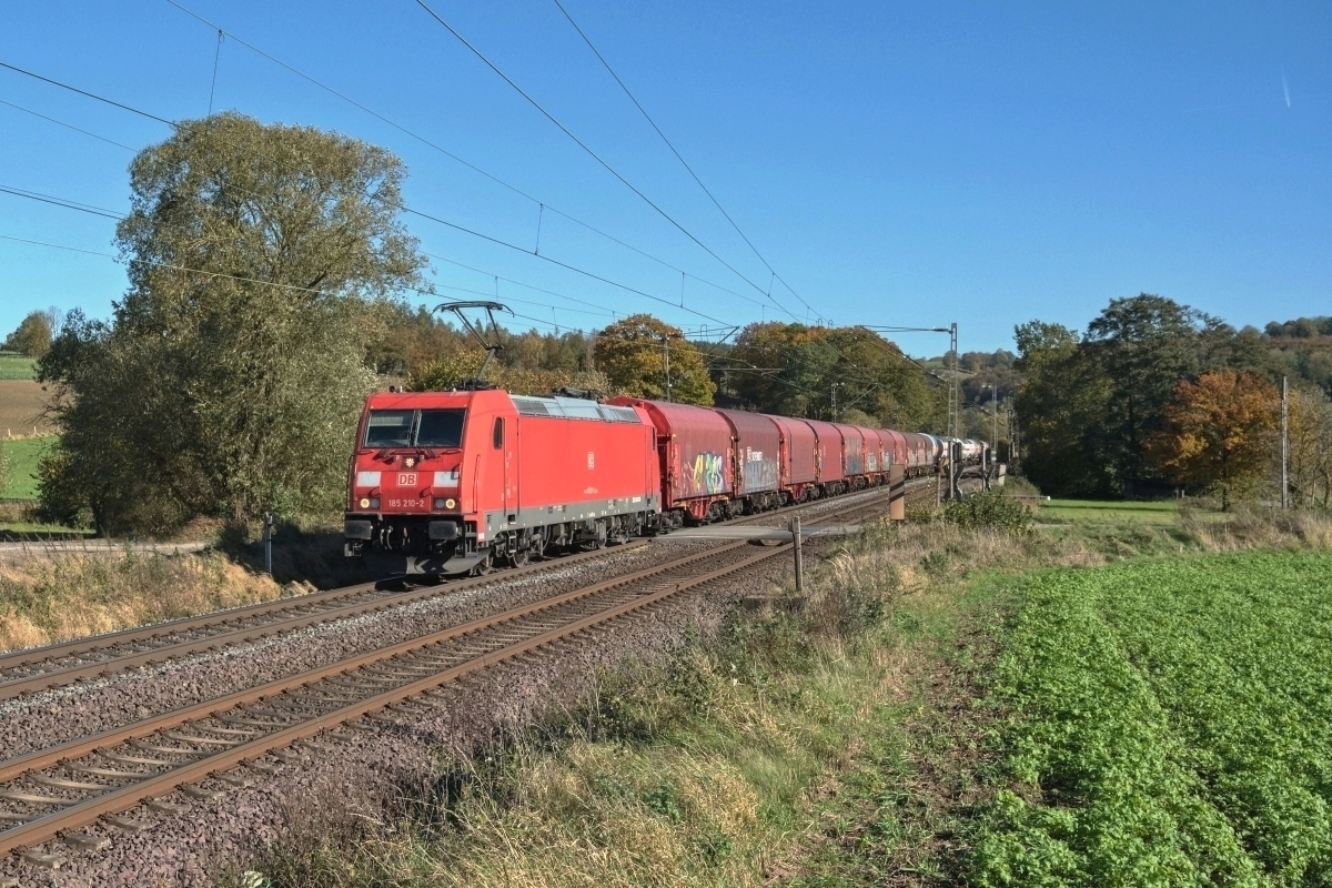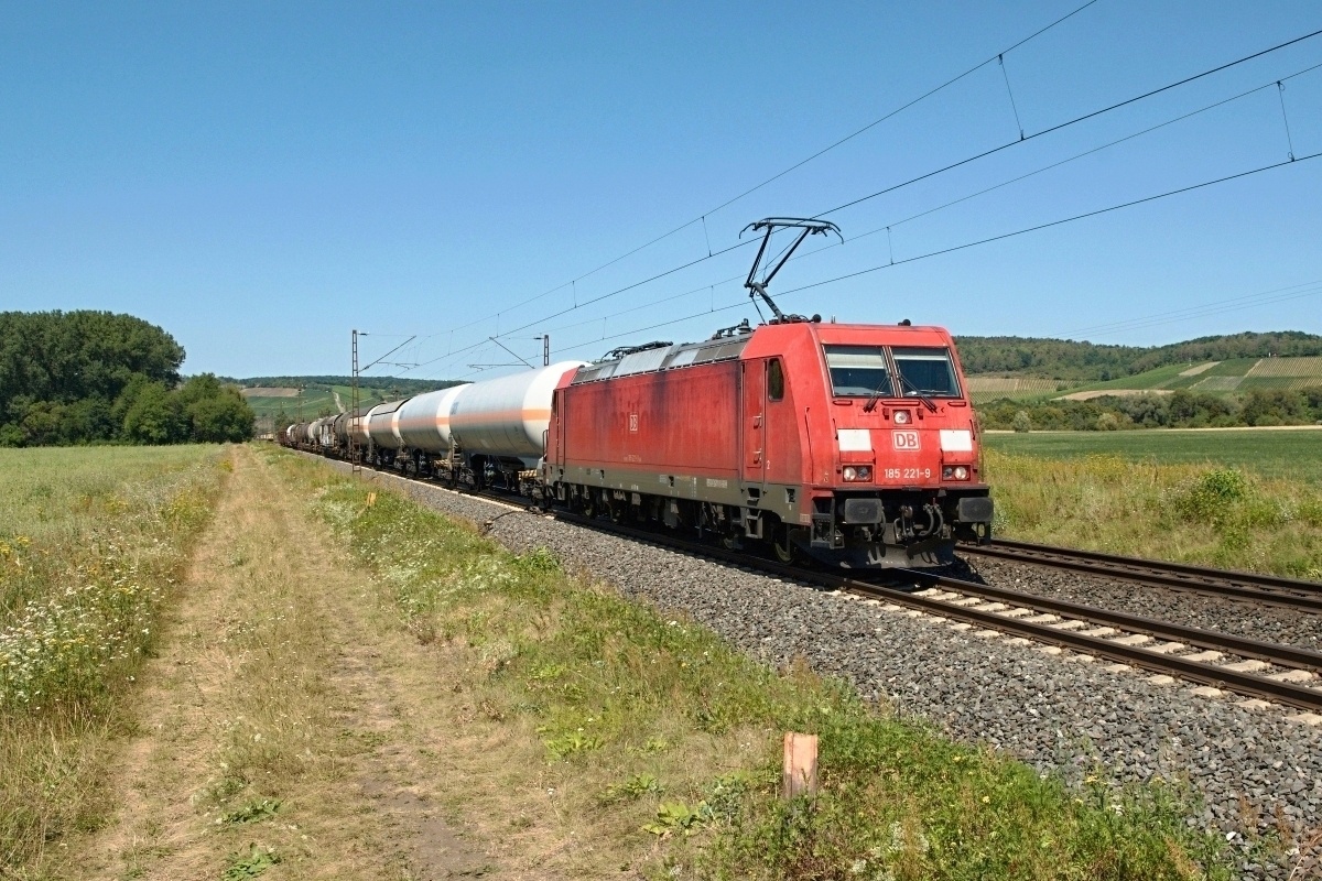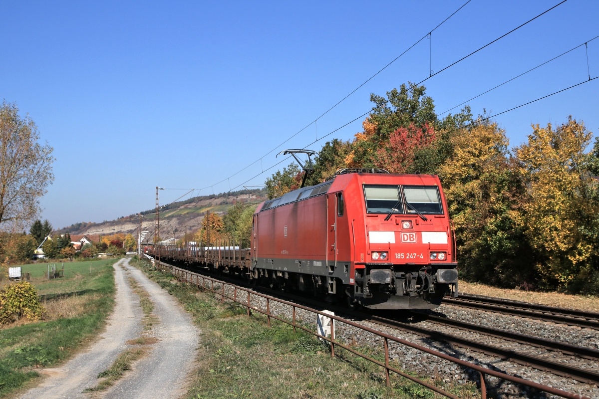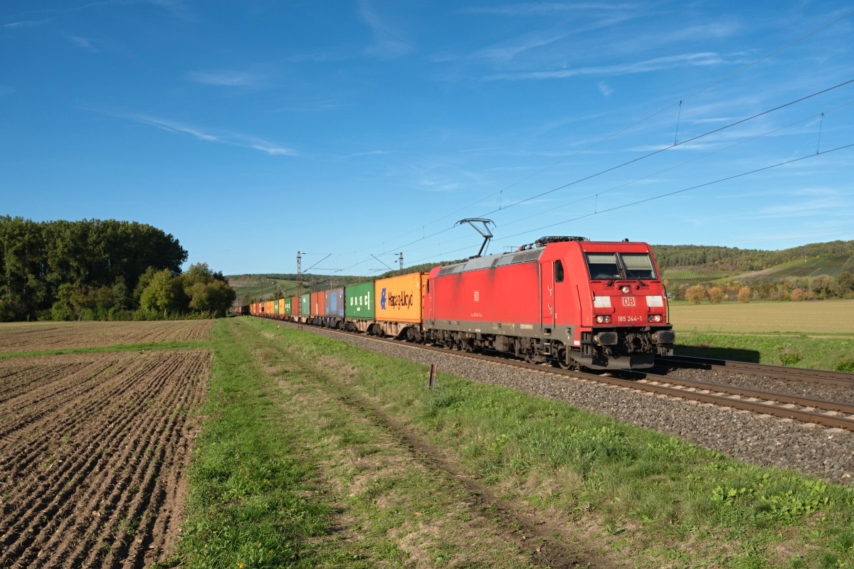 Dto. 185 244-1 am 06.10.2022 bei Retzbach (NREZ) mit einem voll beladenen KT