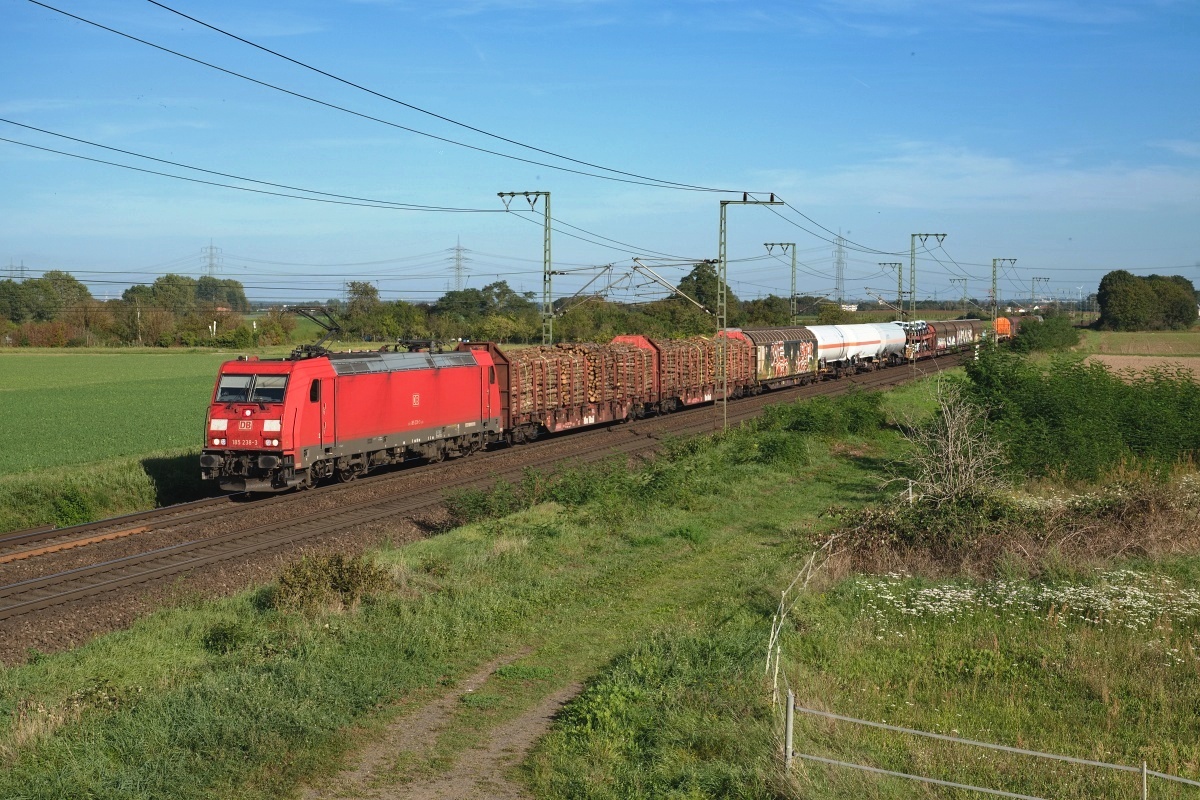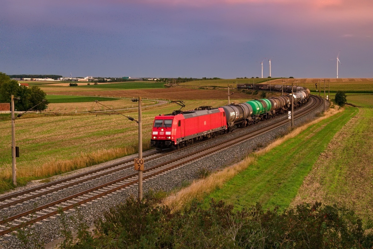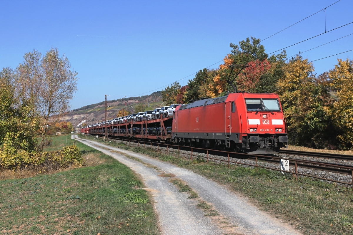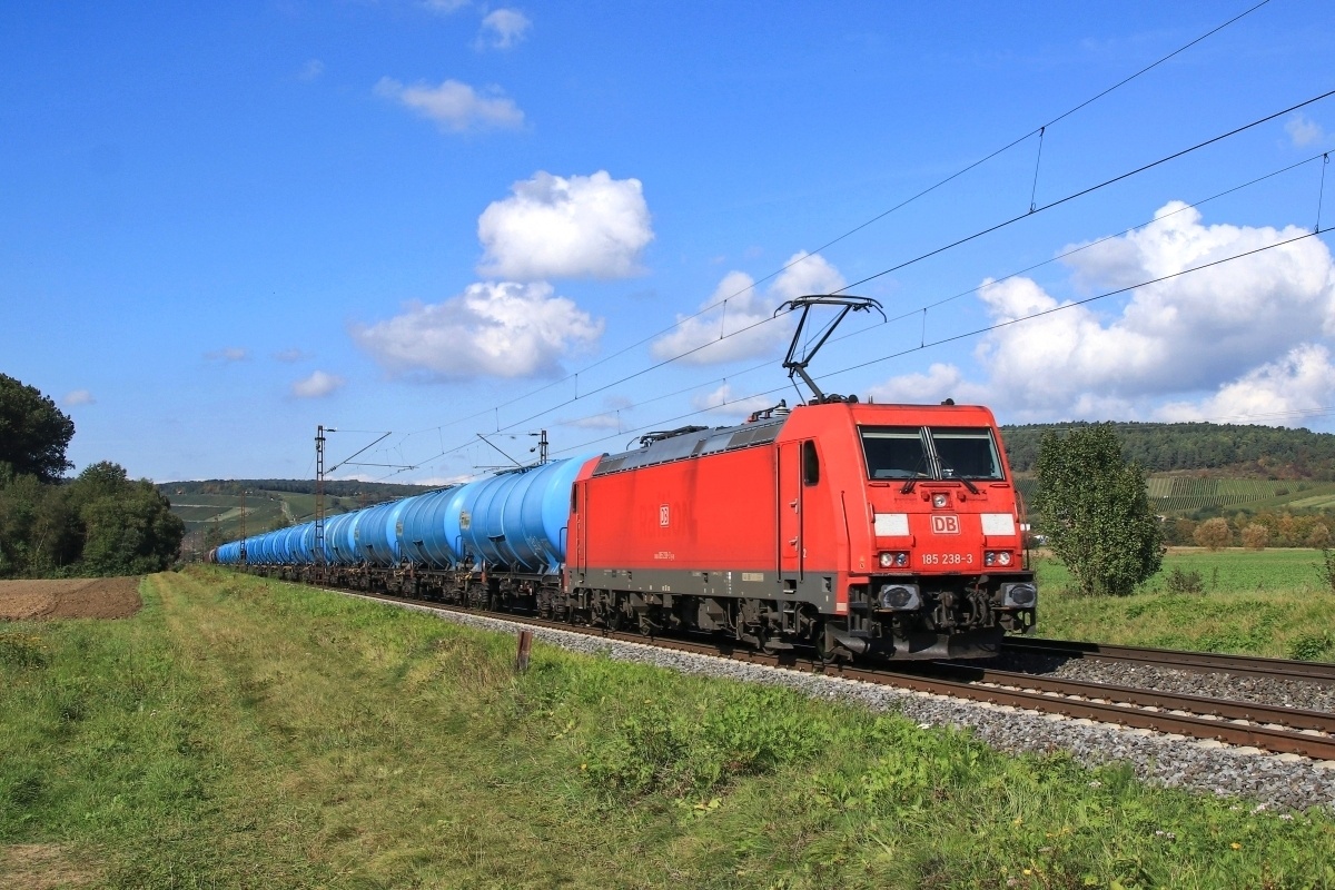 Dto. 185 244-1 am 06.10.2022 bei Retzbach (NREZ) mit einem voll beladenen KT
