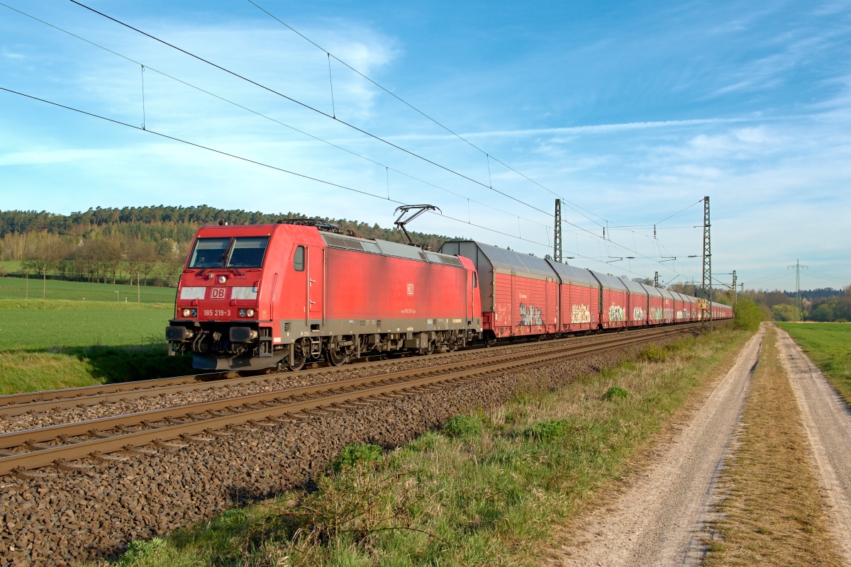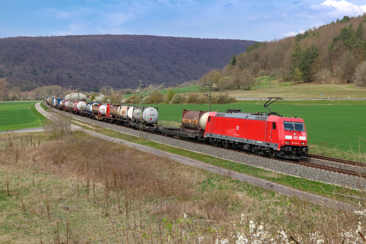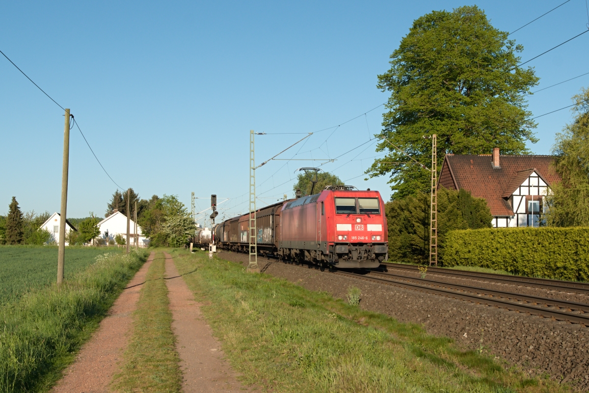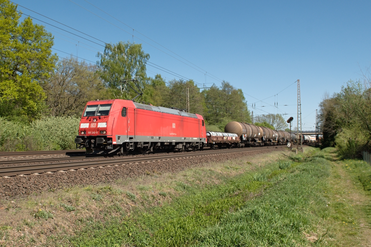 Dto. 185 240-9 am 24.04.2020 im Gümmer Wald (HGUE) mit dem EZ 51228 von