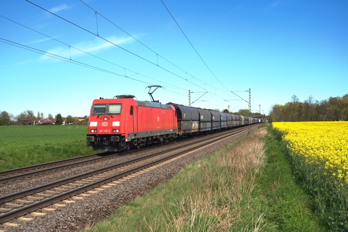 Dto. 185 245-8 am 19.04.2022 bei Kirchhorsten (HKHN) auch mit dem Voll-Kohlezug von Zdzieszowice (XPZDZ) nach
