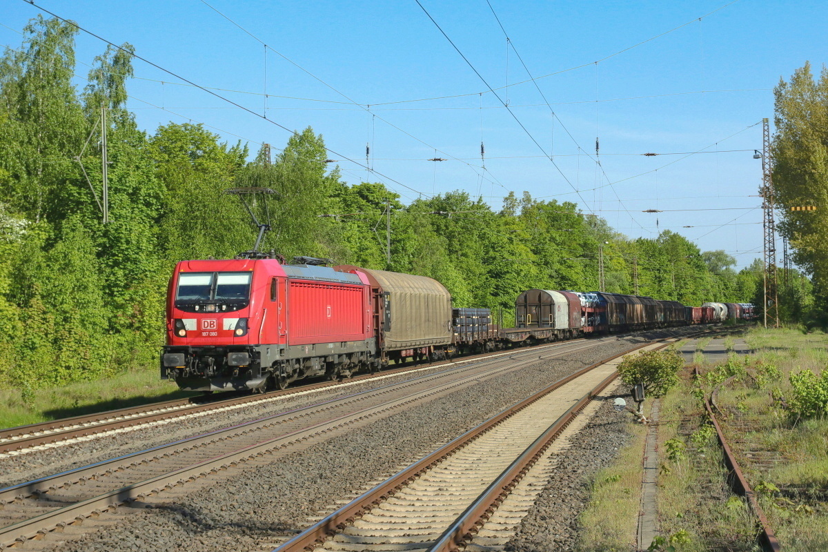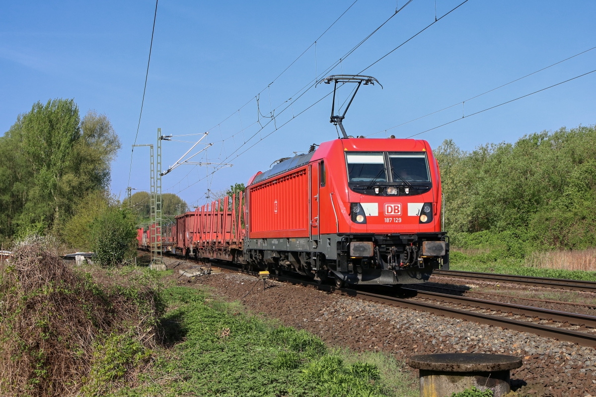 Dto. 187 080-7 am 04.05.2018. Hier passierte die Lok Banteln (HBAN) mit