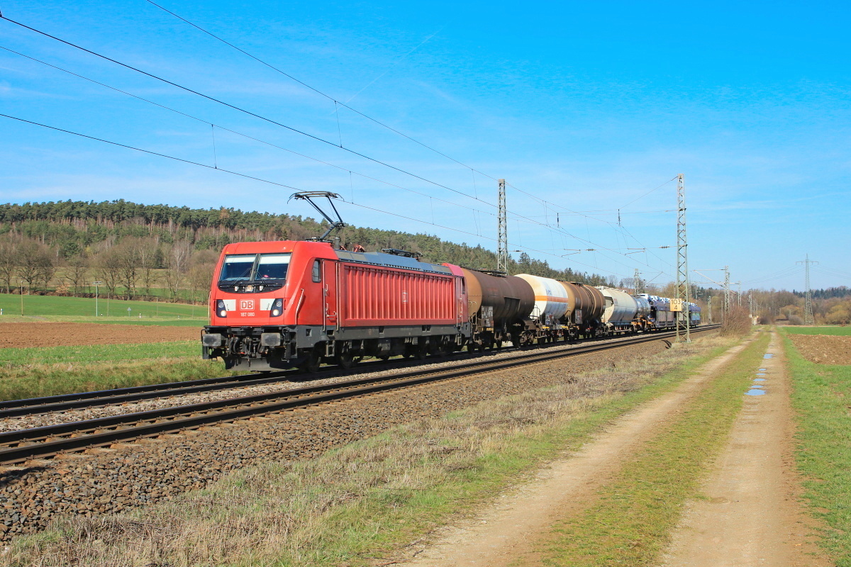187 100-3 (NVR 91 80 6187 100-3 D-DB) am 31.03.2017 bei Ahlten mit einem