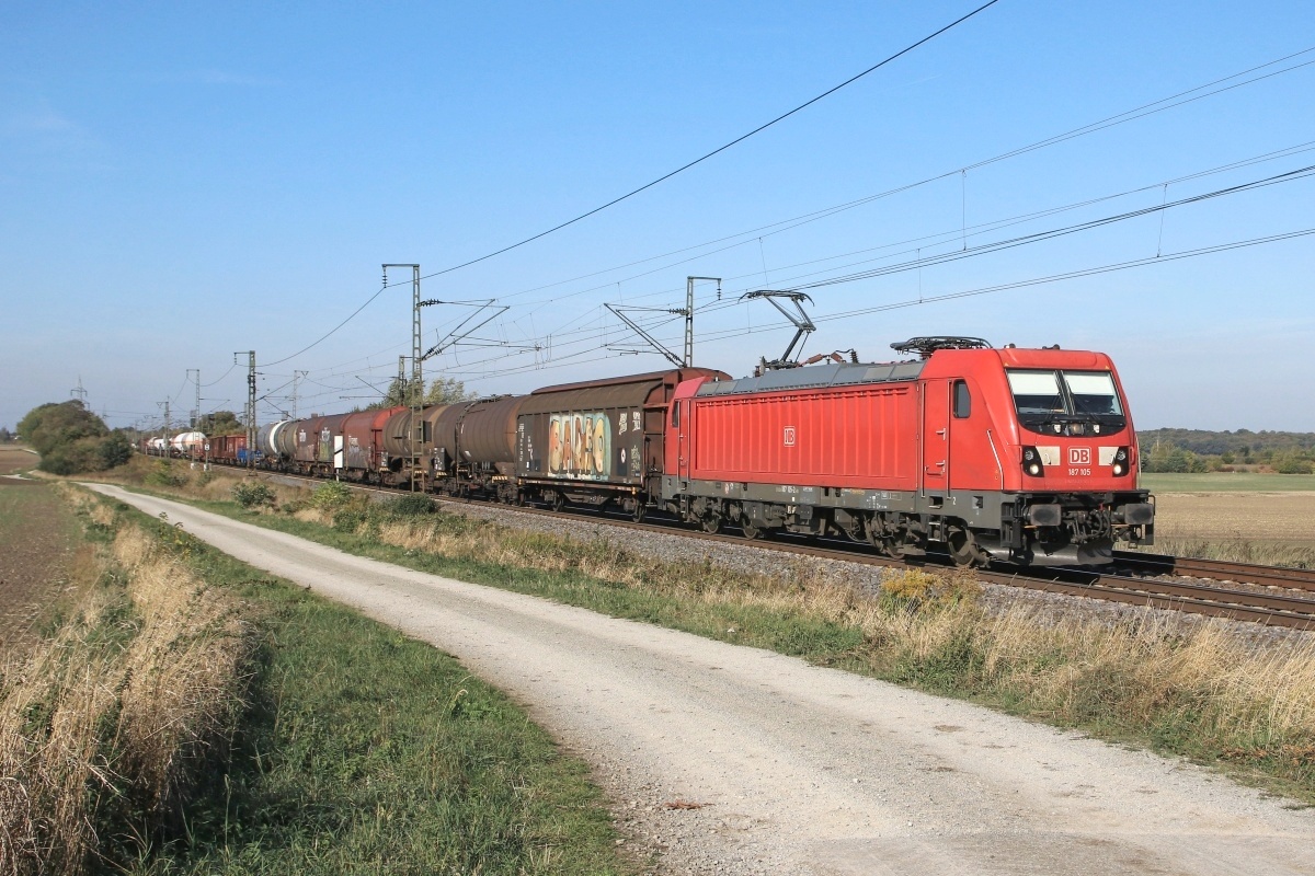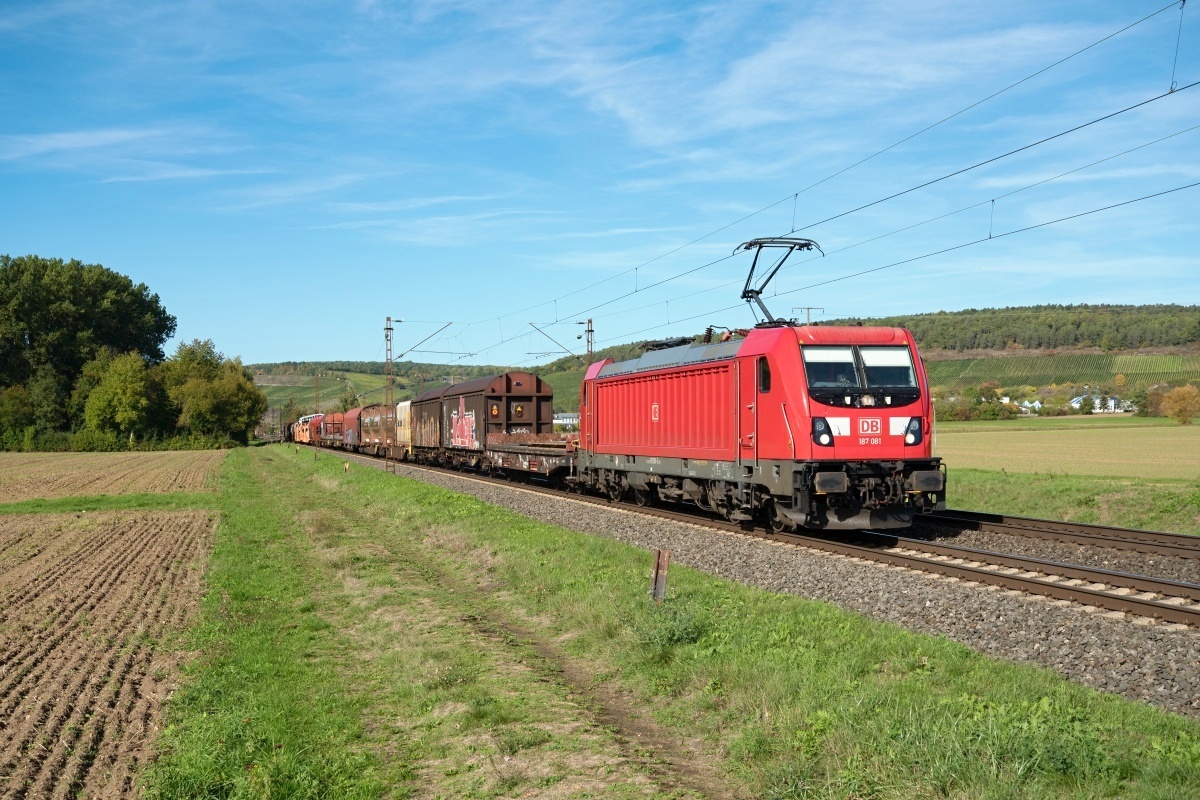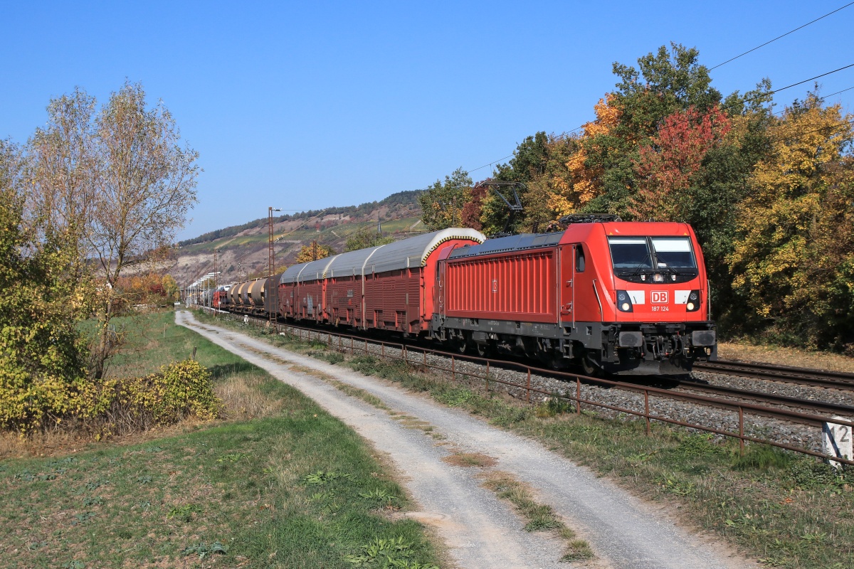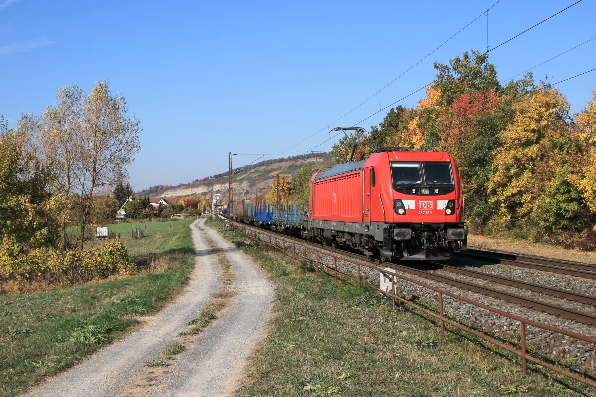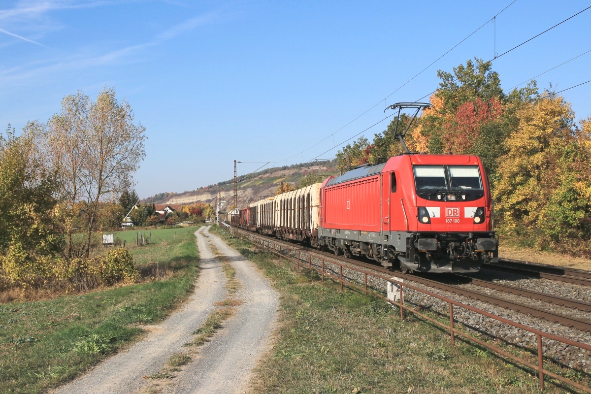 Dto. 187 100-3 am 11.10.2018. Hier passierte die Lok Thüngersheim mit einem