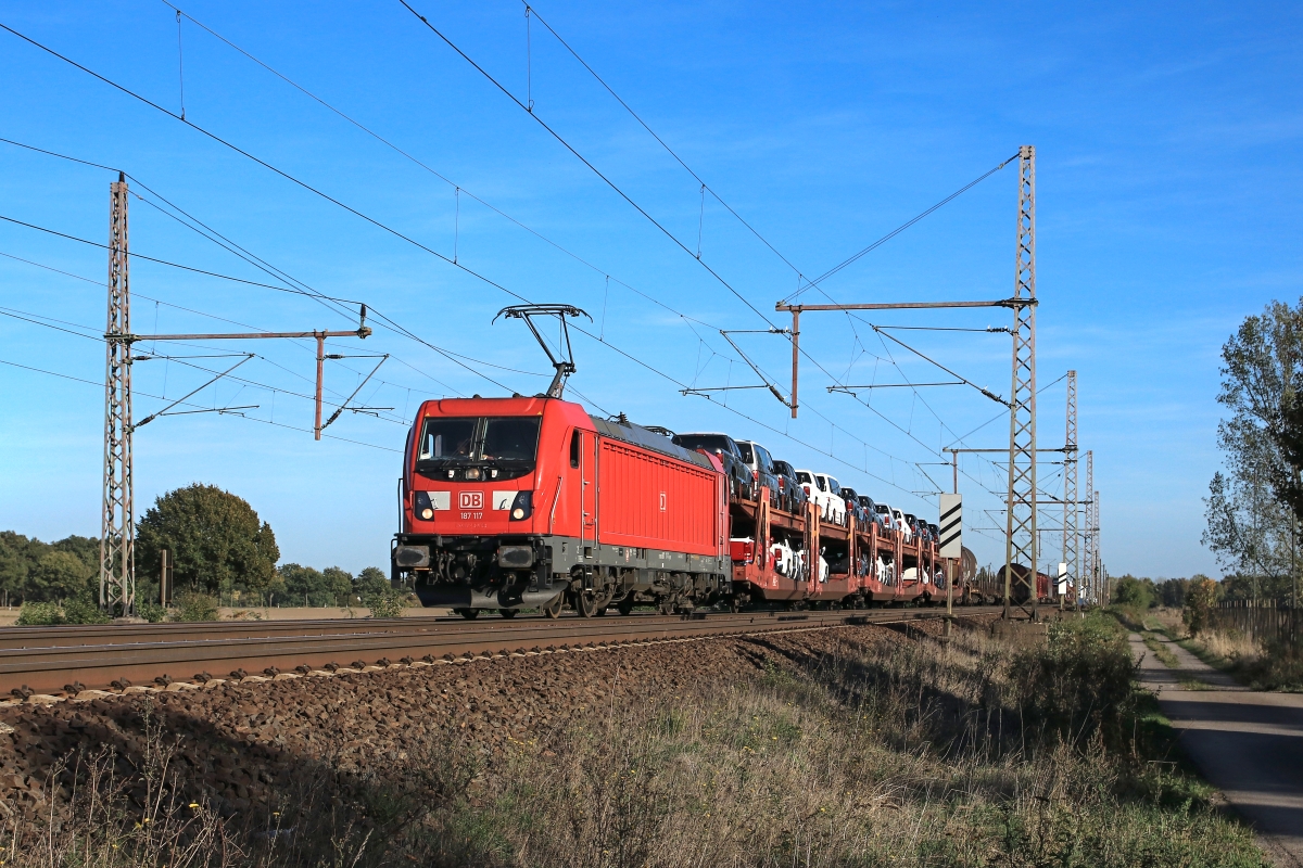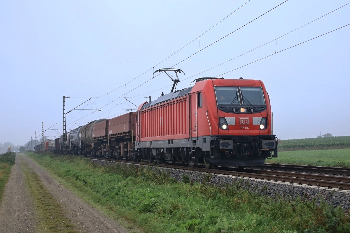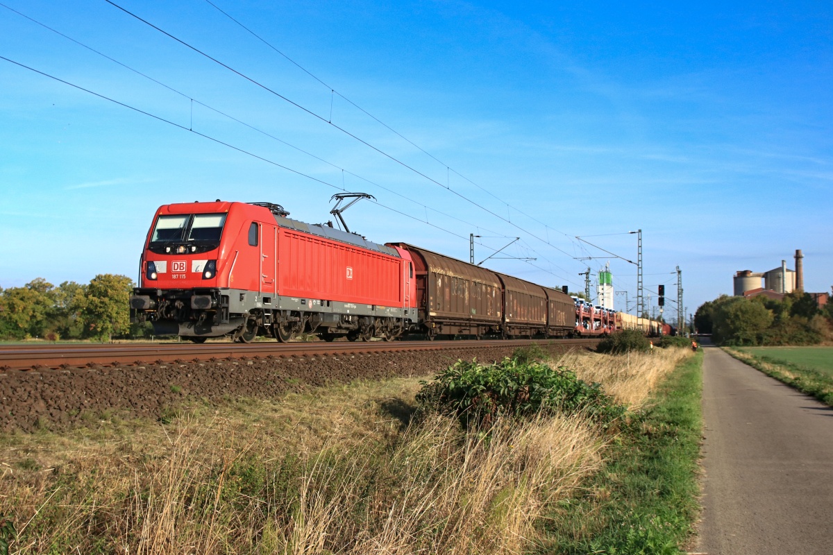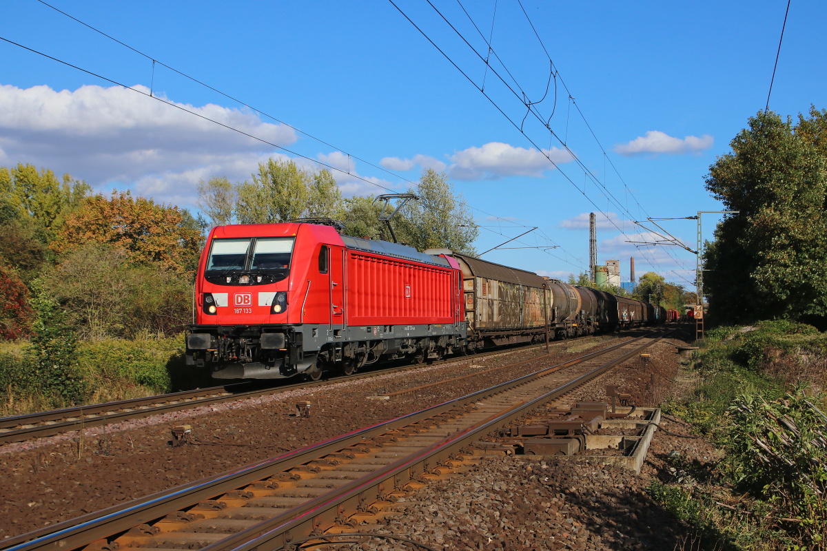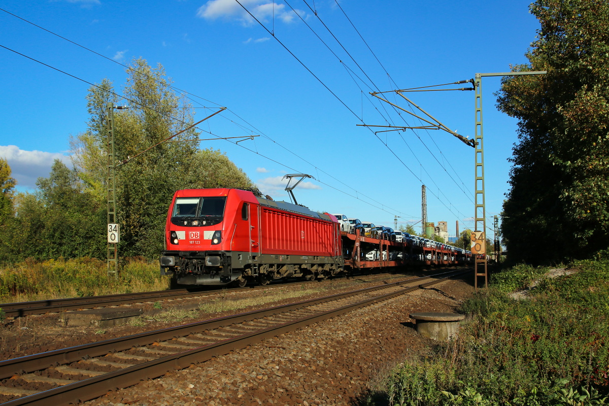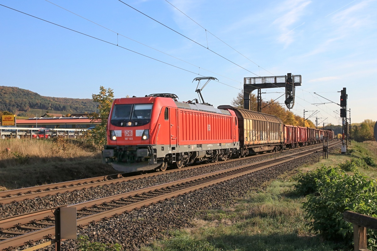 Dto. 187 100-3 am 11.10.2018. Hier passierte die Lok Thüngersheim mit einem
