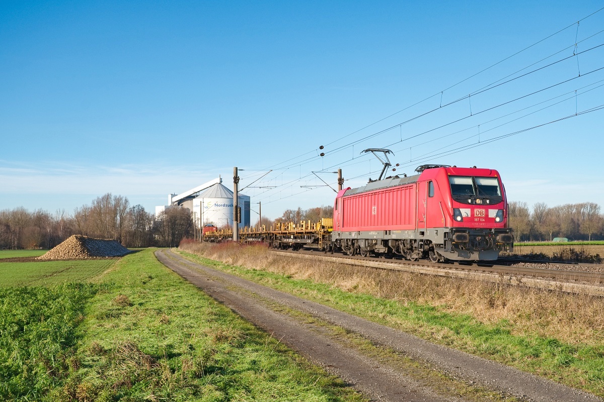Dto. 187 104-5 am 30.11.2024 bei Wierthe (HWIR) mit einem EZ Rtg.