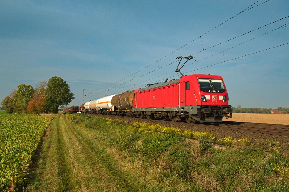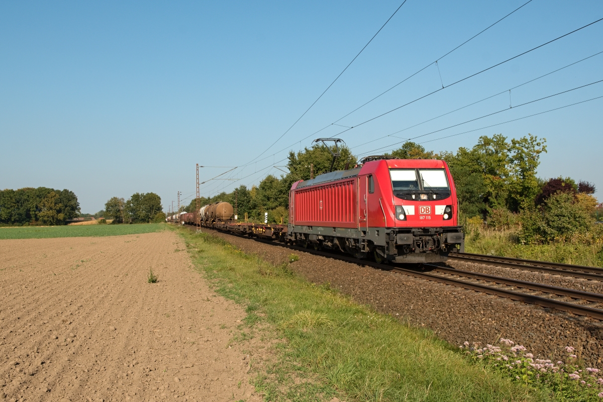 Dto. 187 102-9 am 17.09.2020 bei Bückeburg (HBKB) mit dem EZ 51128 von