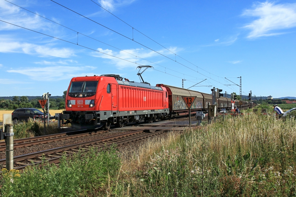 Dto. 187 124-3 am 03.07.2018. Hier passierte die Lok einen Bü bei