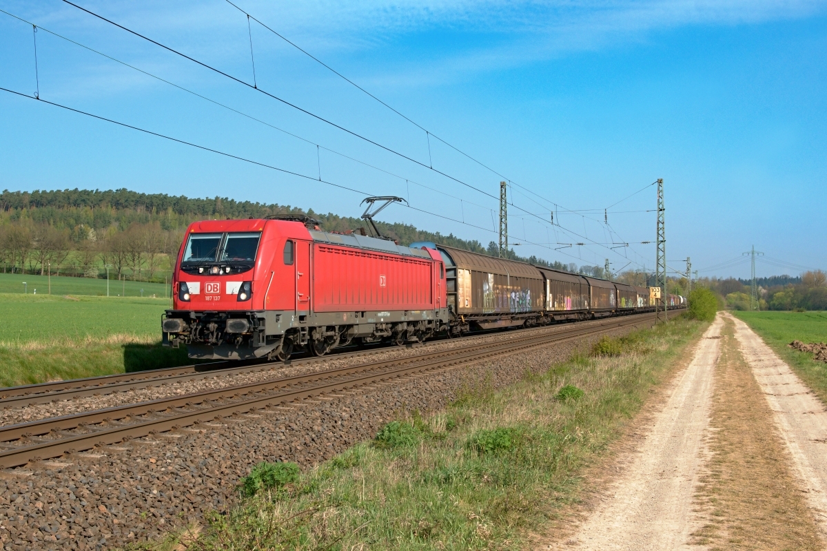 Dto. 187 137-5 am 09.05.2022 bei Twistringen (HT) mit einem EZ Rtg.