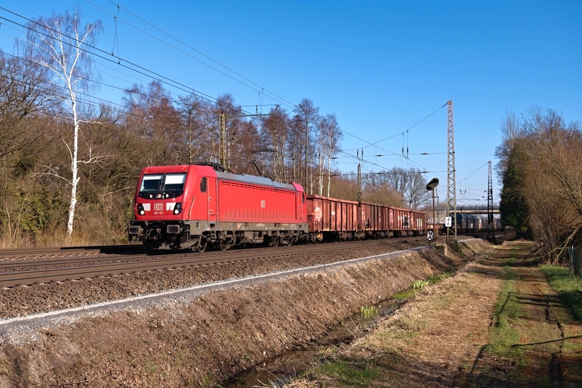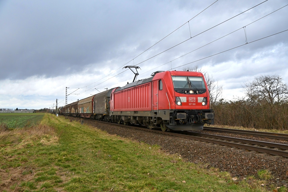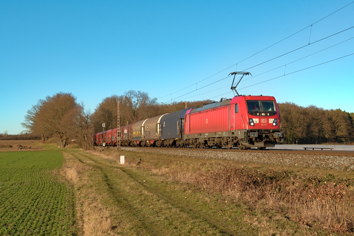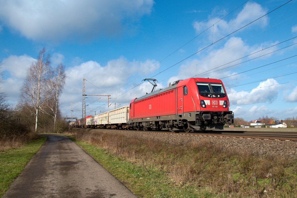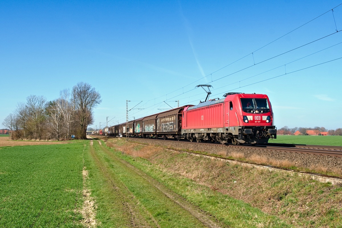 Dto. 187 157-3 am 13.03.2022. Hier war die Lok im Gümmer Wald (HGUE) mit einem EZ