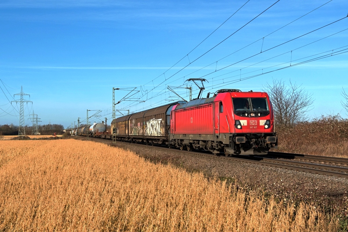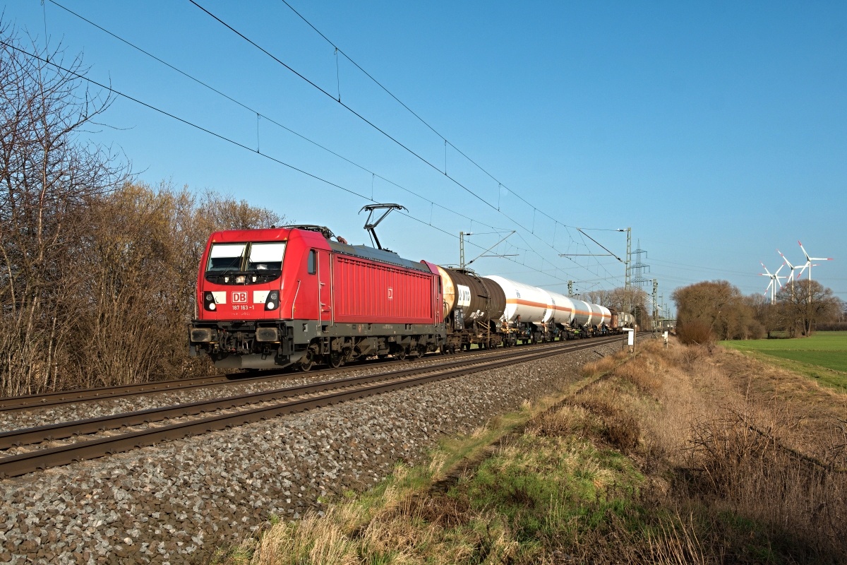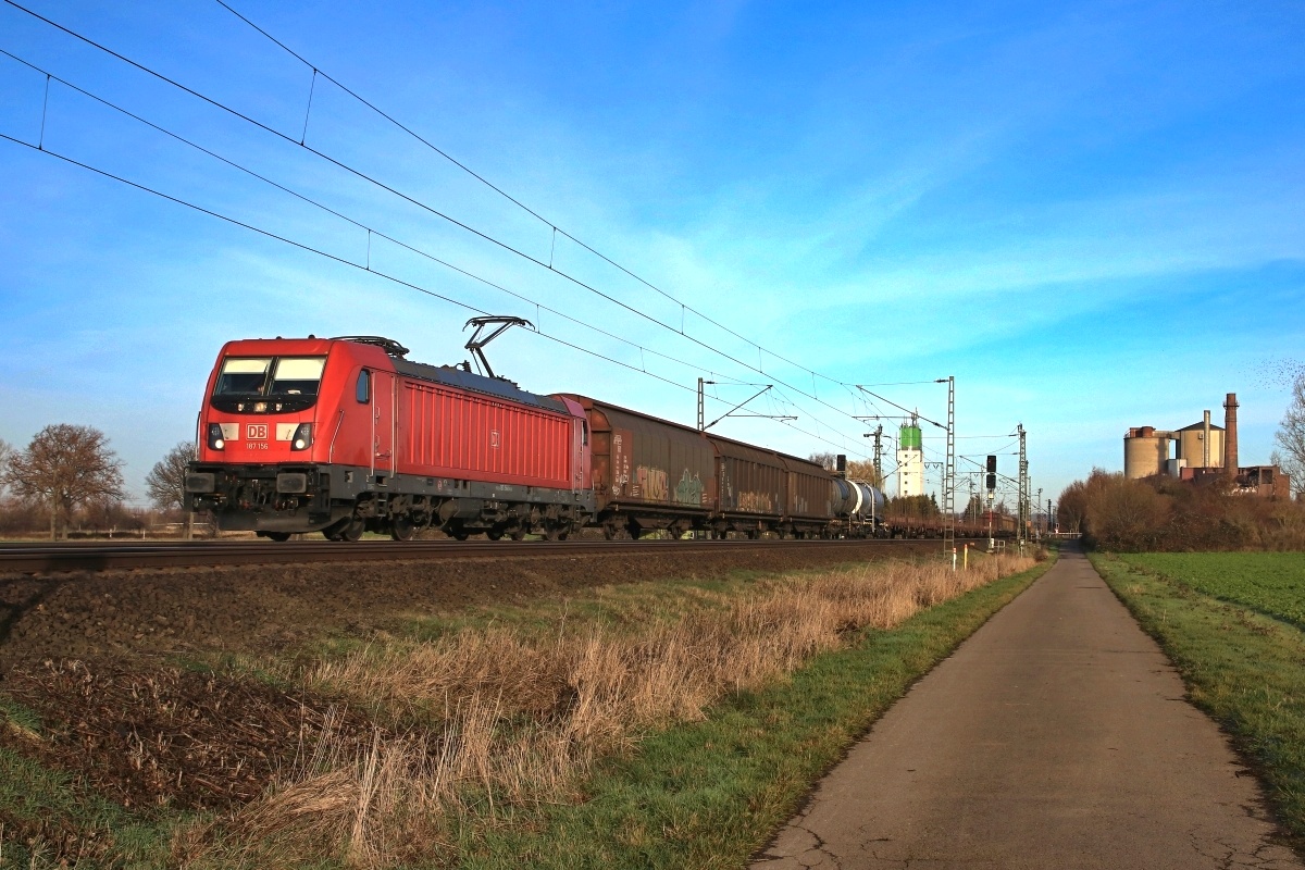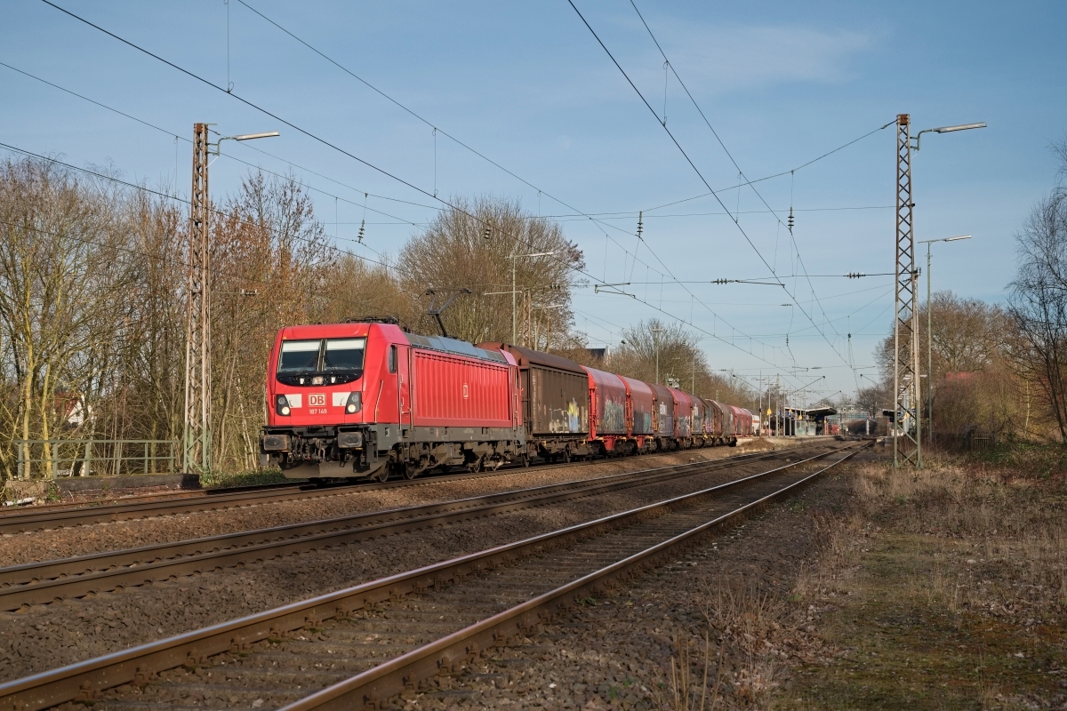 Dto. 187 157-3 am 13.03.2022. Hier war die Lok im Gümmer Wald (HGUE) mit einem EZ
