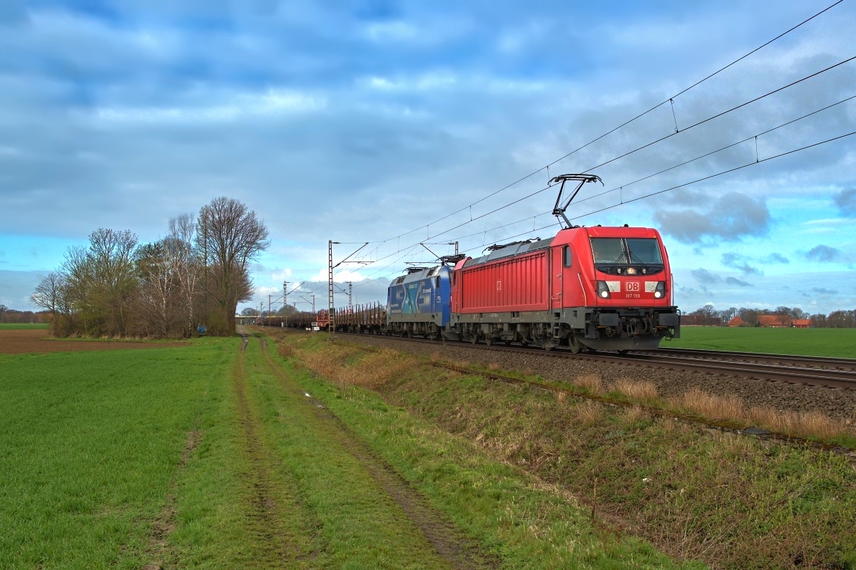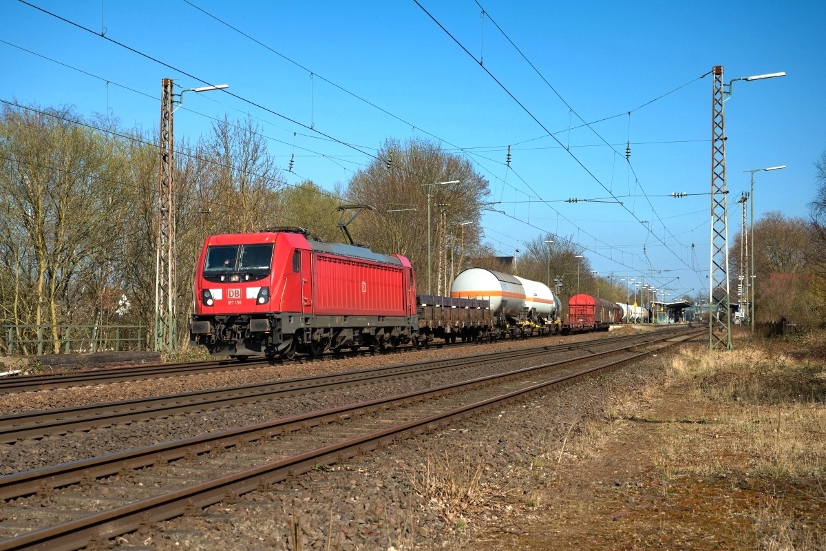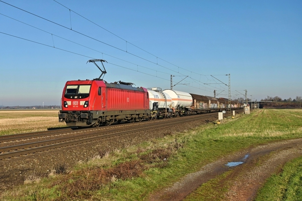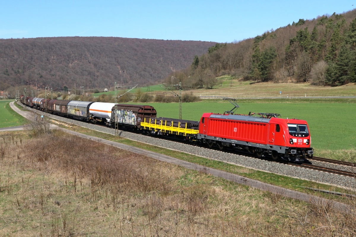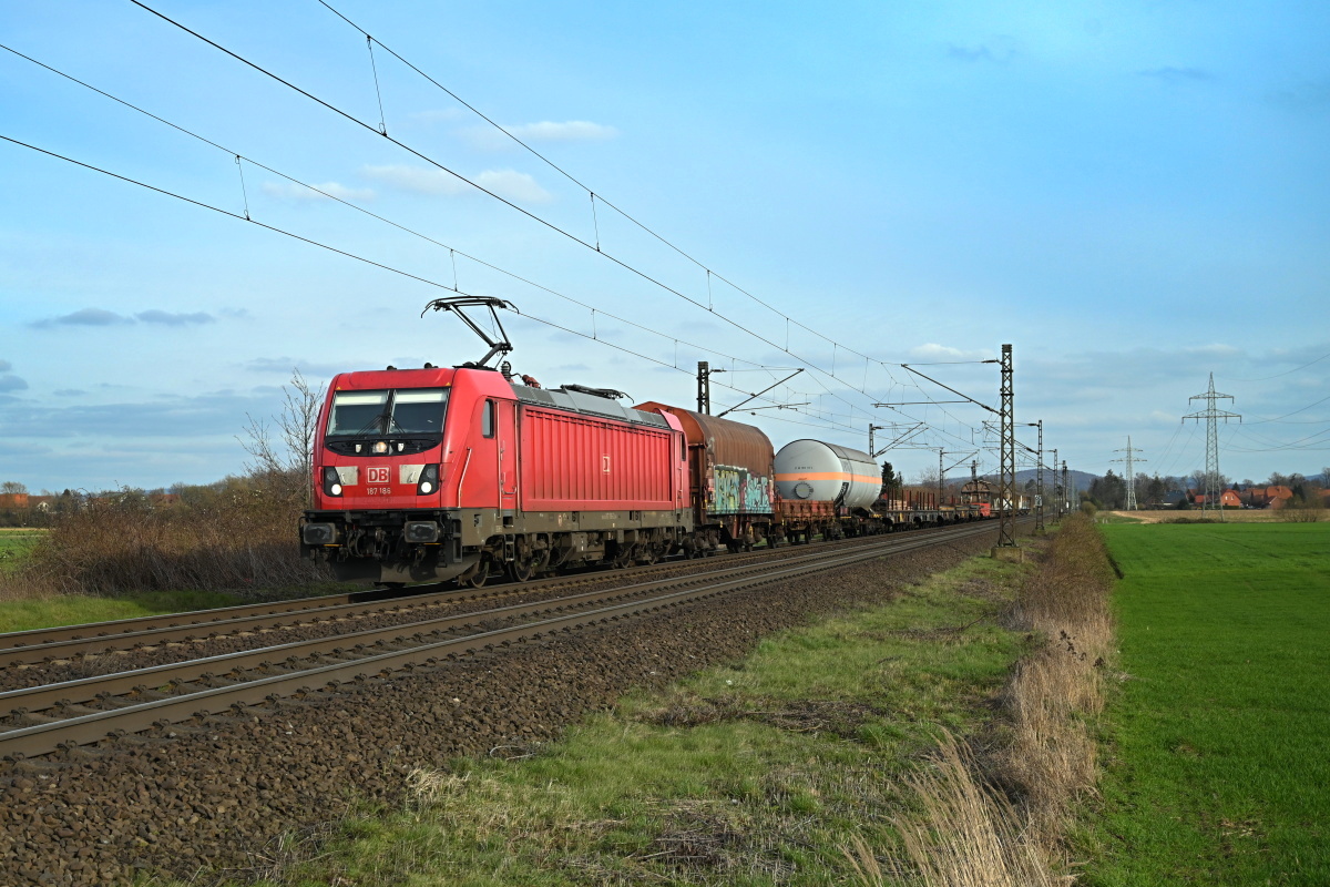 Dto. 187 157-3 am 13.03.2022. Hier war die Lok im Gümmer Wald (HGUE) mit einem EZ