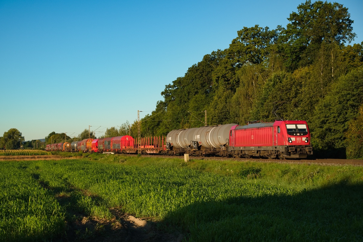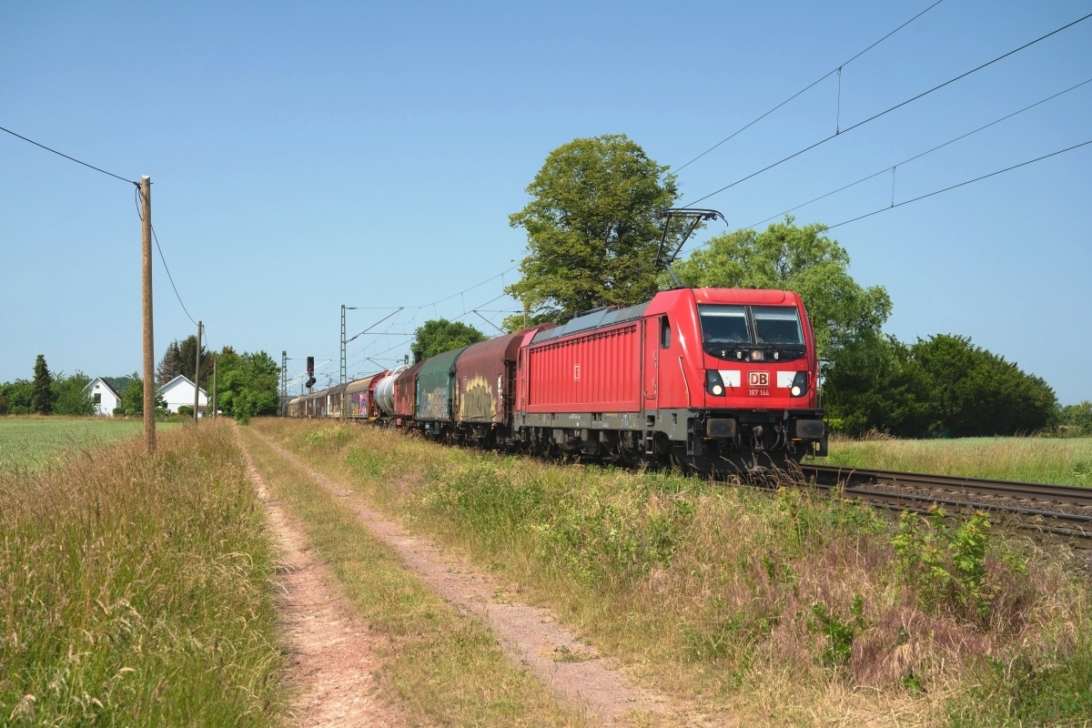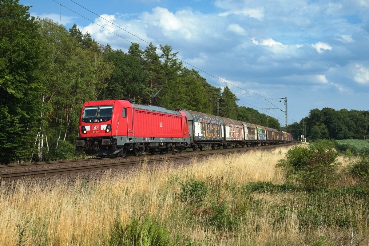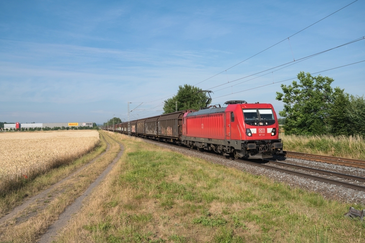 Dto. 187 143-3 am 21.06.2022 bei Altheim (FAT) mit einem H-Wagenzug Rtg.