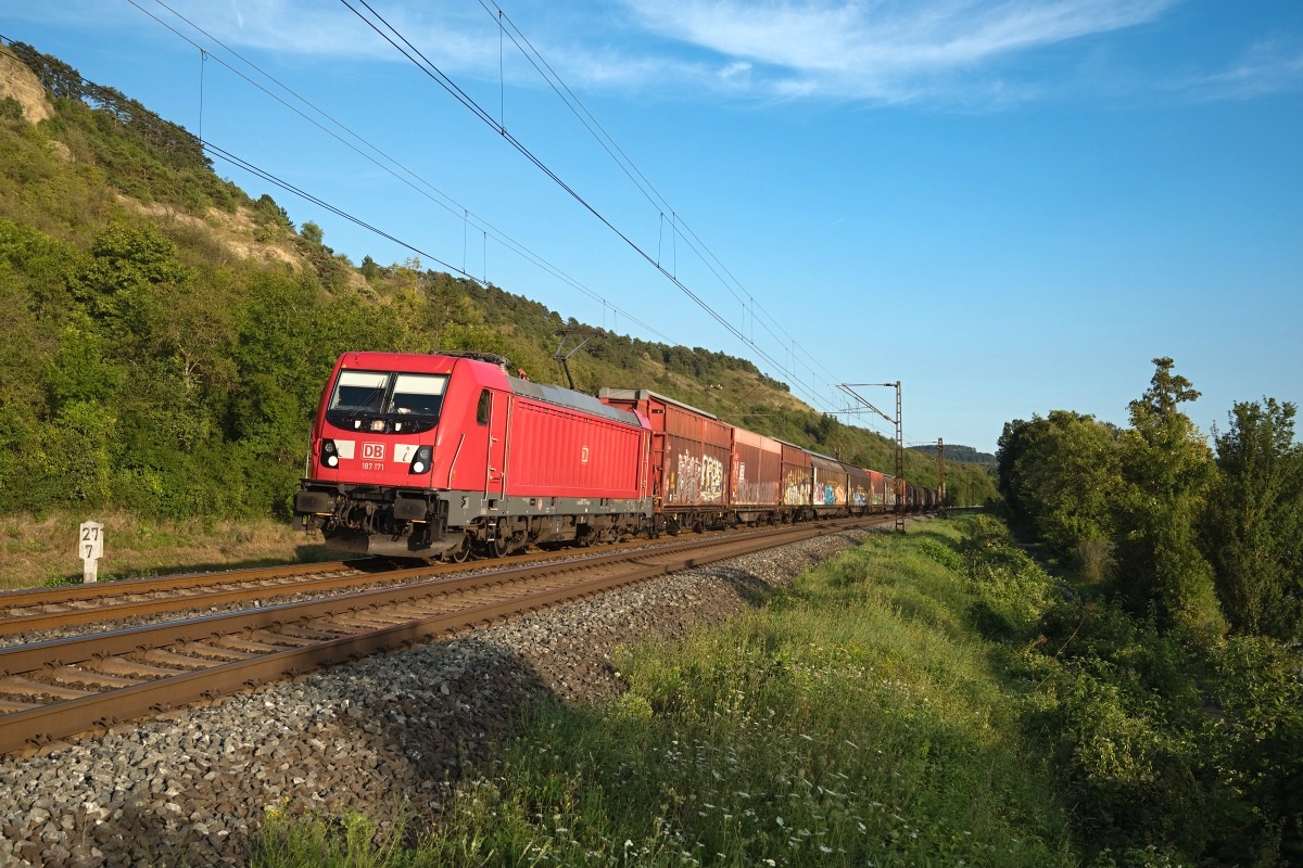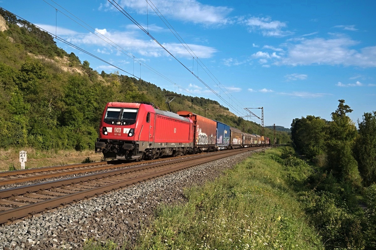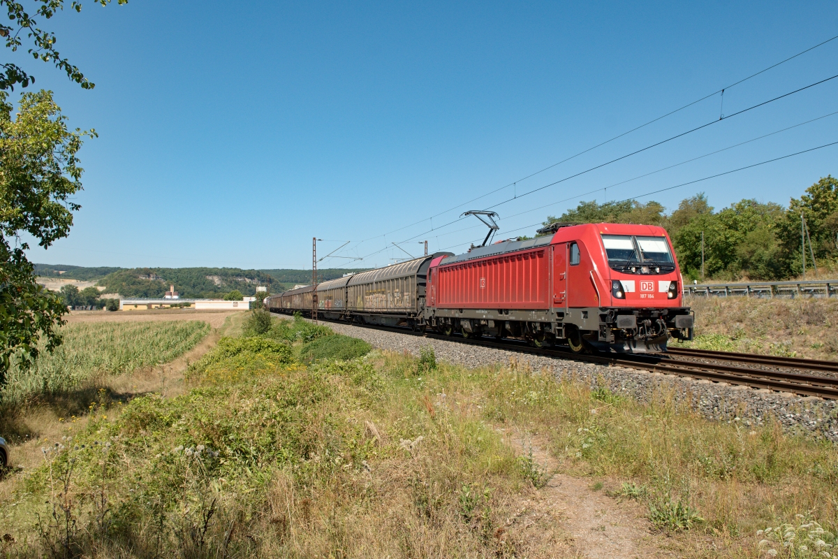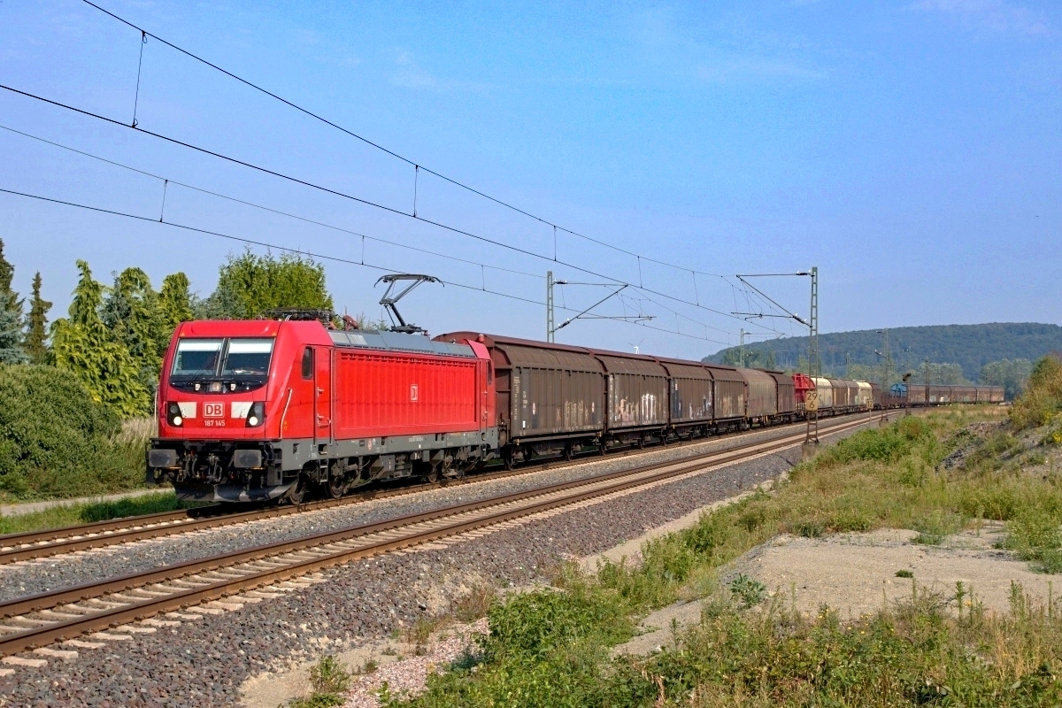 Dto. 187 156-5 am 24.08.2024 im Maintal bei Gambach mit einem H-Wagenzug