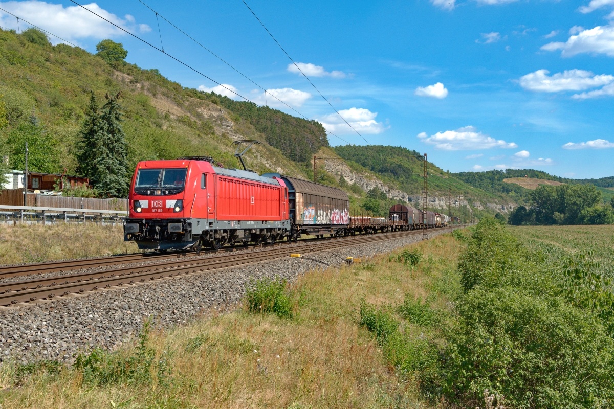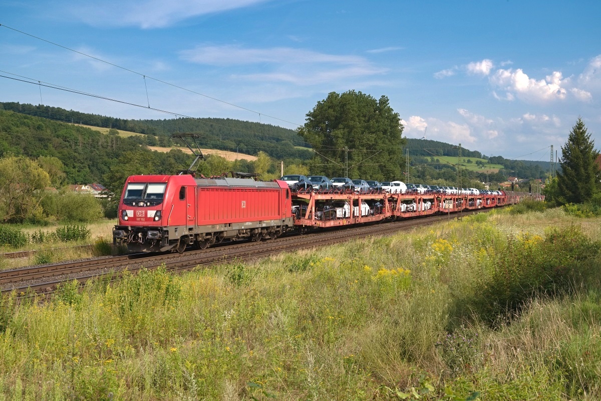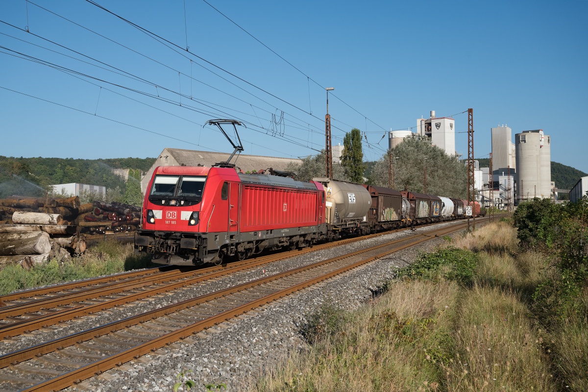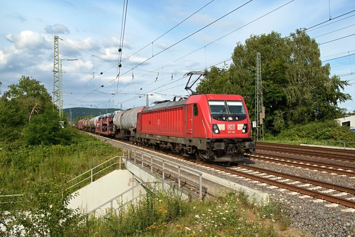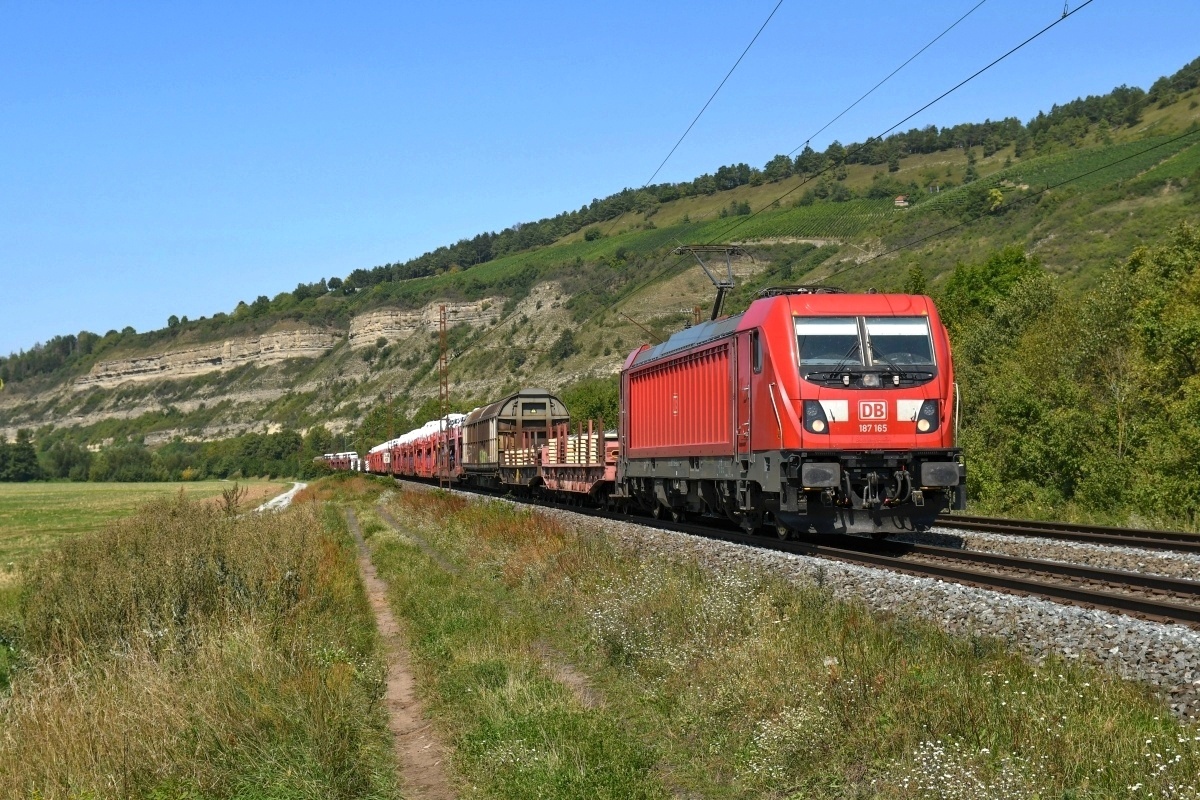 Dto. 187 156-5 am 24.08.2024 im Maintal bei Gambach mit einem H-Wagenzug