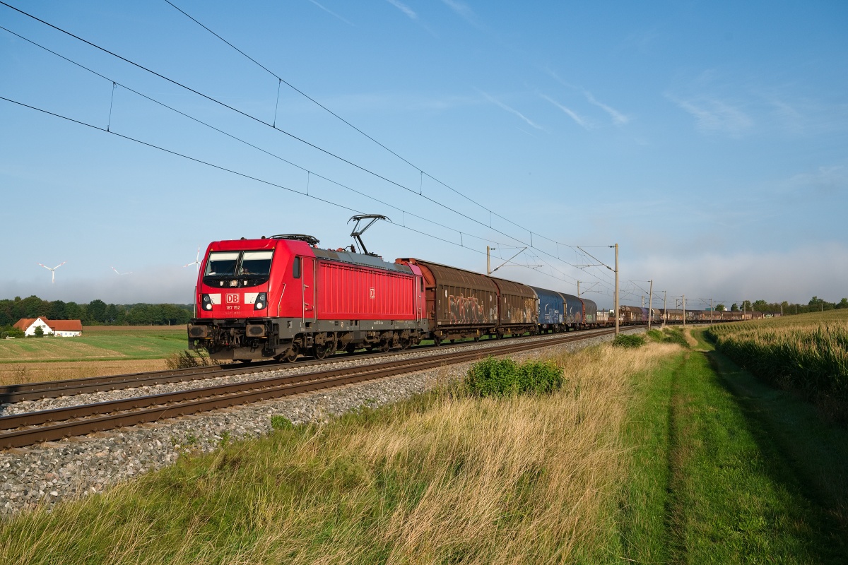Dto. 187 179-7 am 03.07.2022 bei Oberhaun (FOBN) mit einem teilbeladenen GA Rtg.