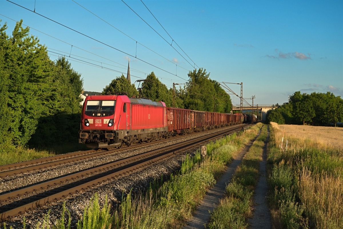 Dto. 187 158-1 am 01.07.2022 im Abendlicht bei Thüngersheim (NTHM) mit einem