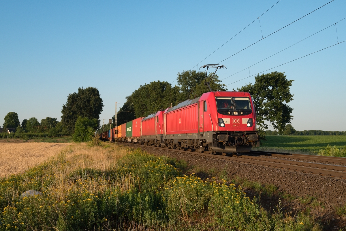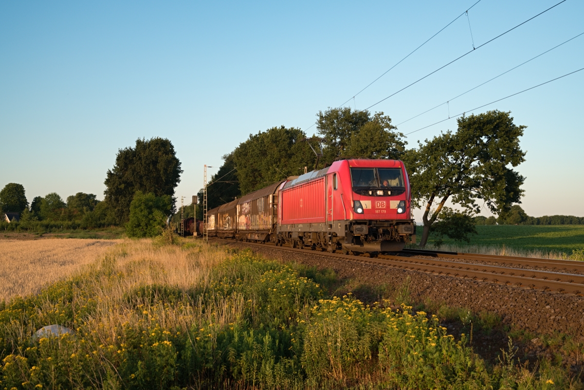 Dto. 187 177-1 am 19.07.2022 zum Sonnenaufgang bei Poggenhagen (HPOG) Liethe