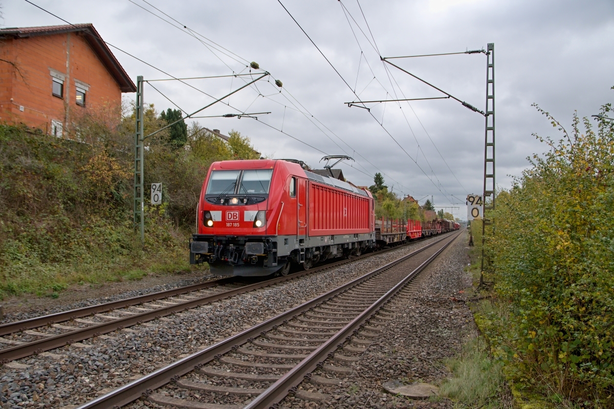 187 185-4 passierte hier am 16.10.2019 den Bahnhof Anzefahr (FAZ) mit