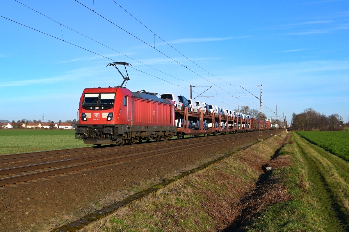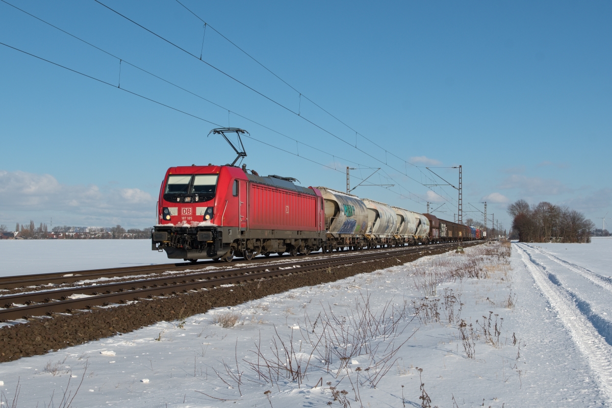 Dto. 187 185-4 am 12.02.2021 bei Lindhorst (HLH) Vornhagen mit einem EZ Rtg.