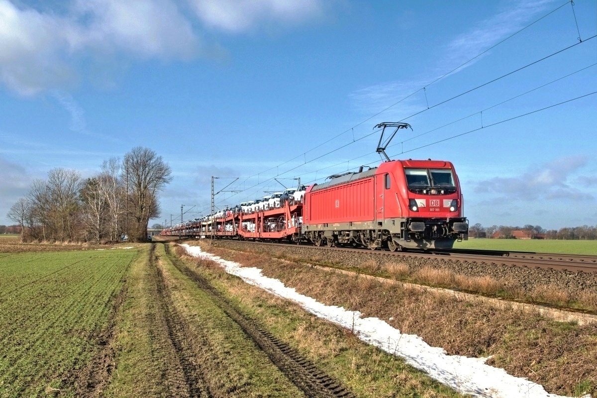 Dto. 187 190-4 morgens am 21.01.2026 bei Bohmte (HBOM) mit einem EZ Rtg.