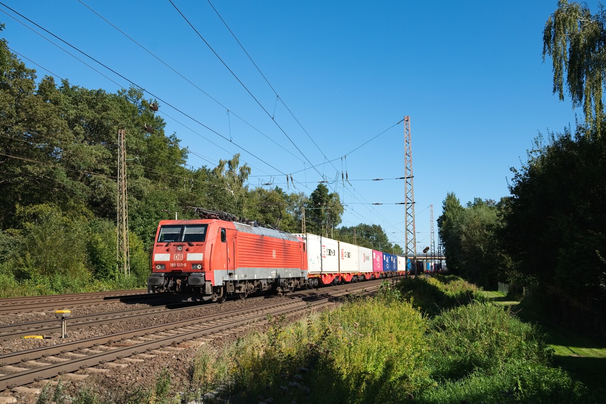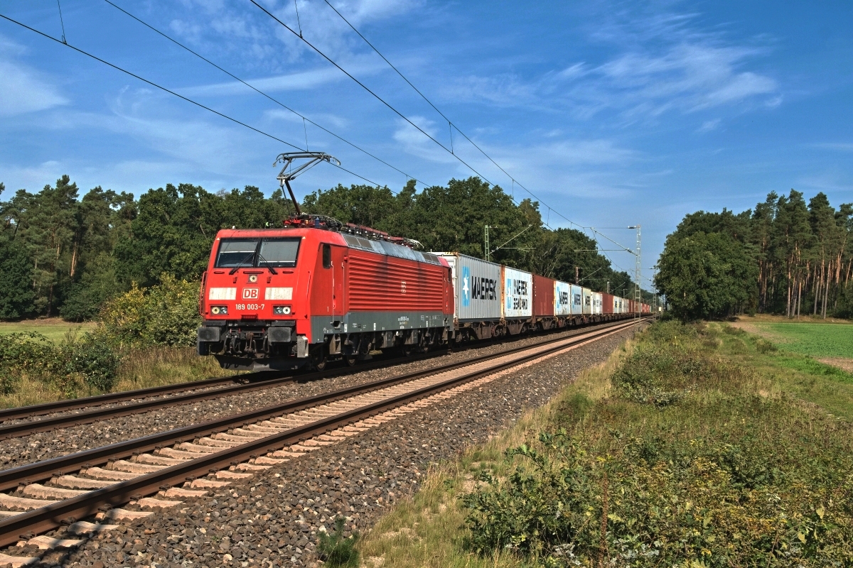 003-7 D-DB) war hier am Die 15.09.2020 bei Rohrsen (HROR) mit dem Containerzug