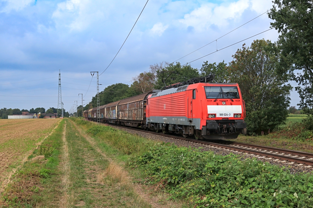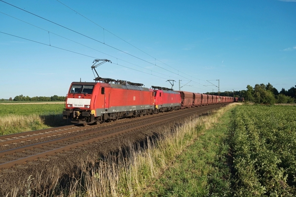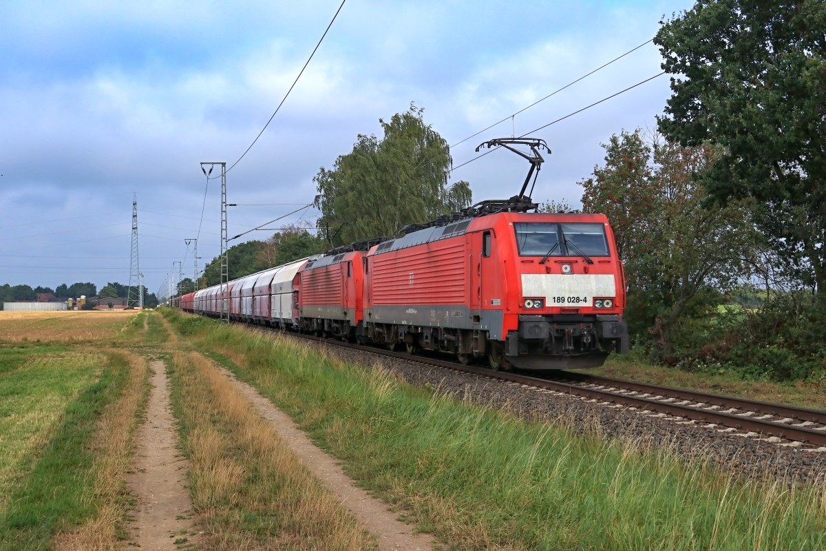 Dto. 189 048-2 früh morgens am 25.08.2022 bei Eilvese (HEIV) mit 189 031-8