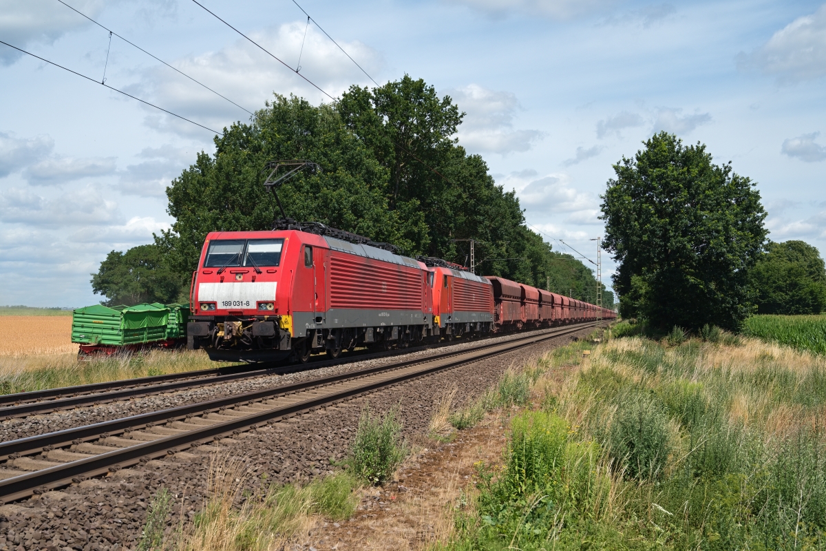 mit 189 031-8 und dem Leer-Erzzug von Beddingen nach dem Hansaport