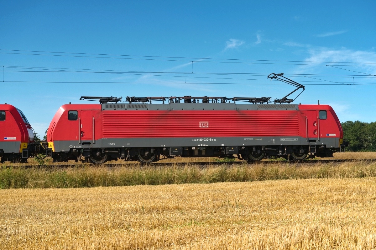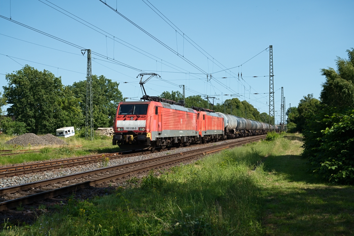 Dto. 189 038-3 am 06.08.2024 bei Vechelde (HVEC) Sierße mit 189 032-6 und
