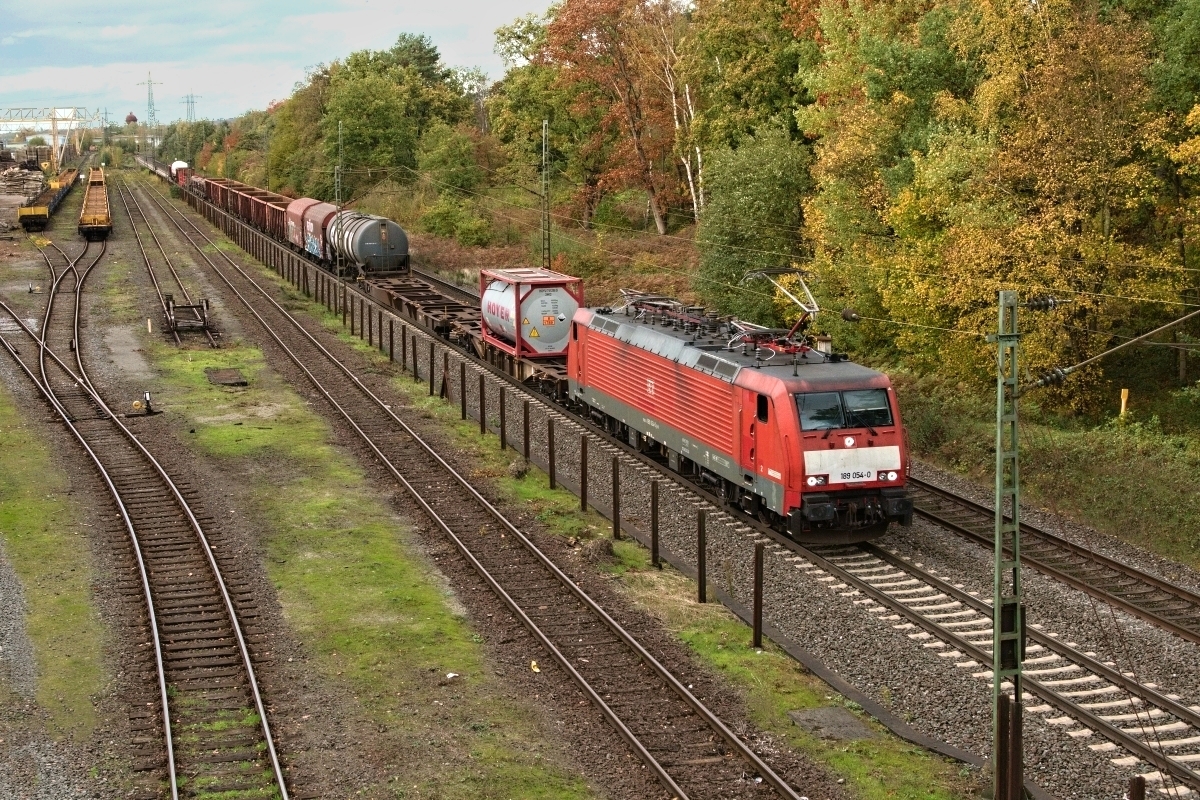 Dto. 189 054-0 am 28.10.2020 beim Schwellenlager Duisburg-Entenfang (Lintorfer
