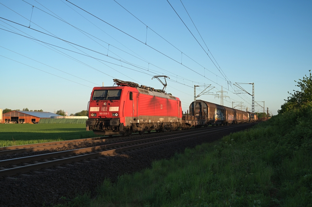 Dto. 189 058-1 am 12.05.2022 kurz nach Sonnenaufgang bei Bückeburg