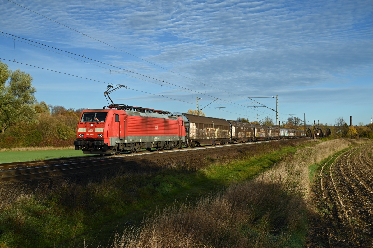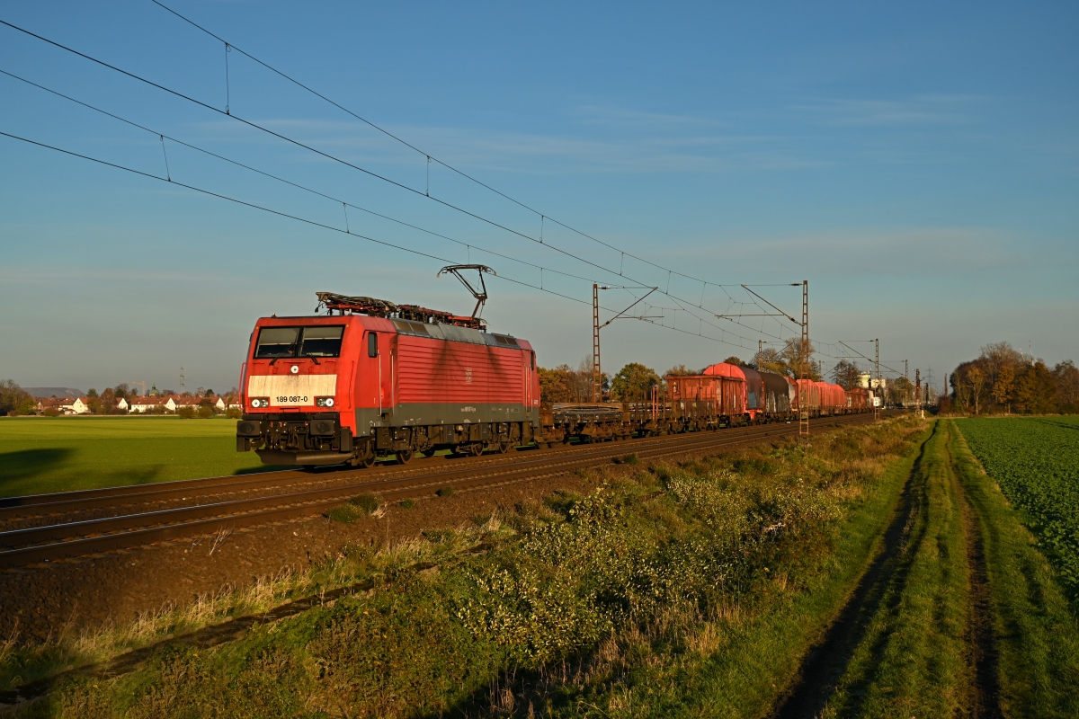 Dto. 189 087-0 am 19.11.2022 im Abendlicht bei Lindhorst (HLH) Vornhagen