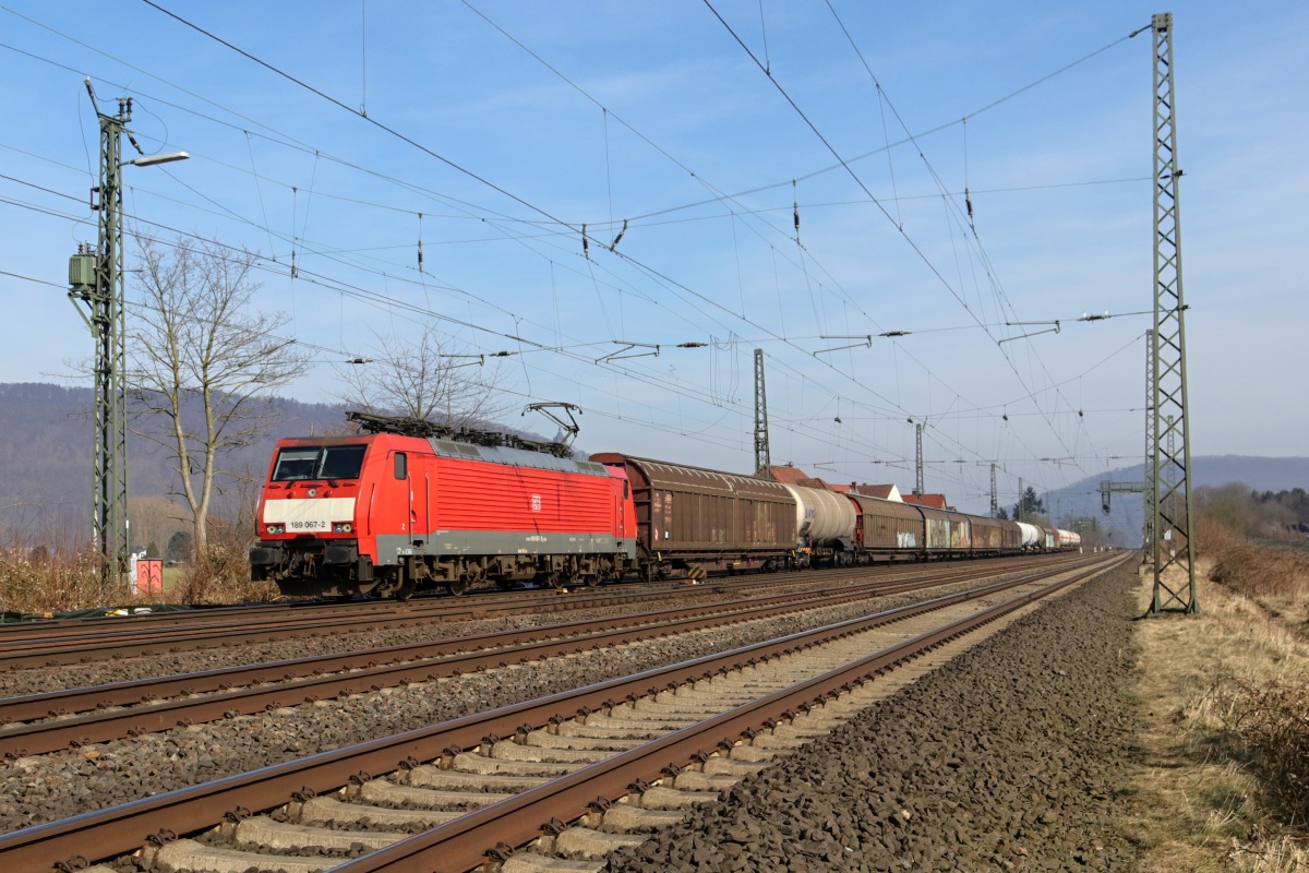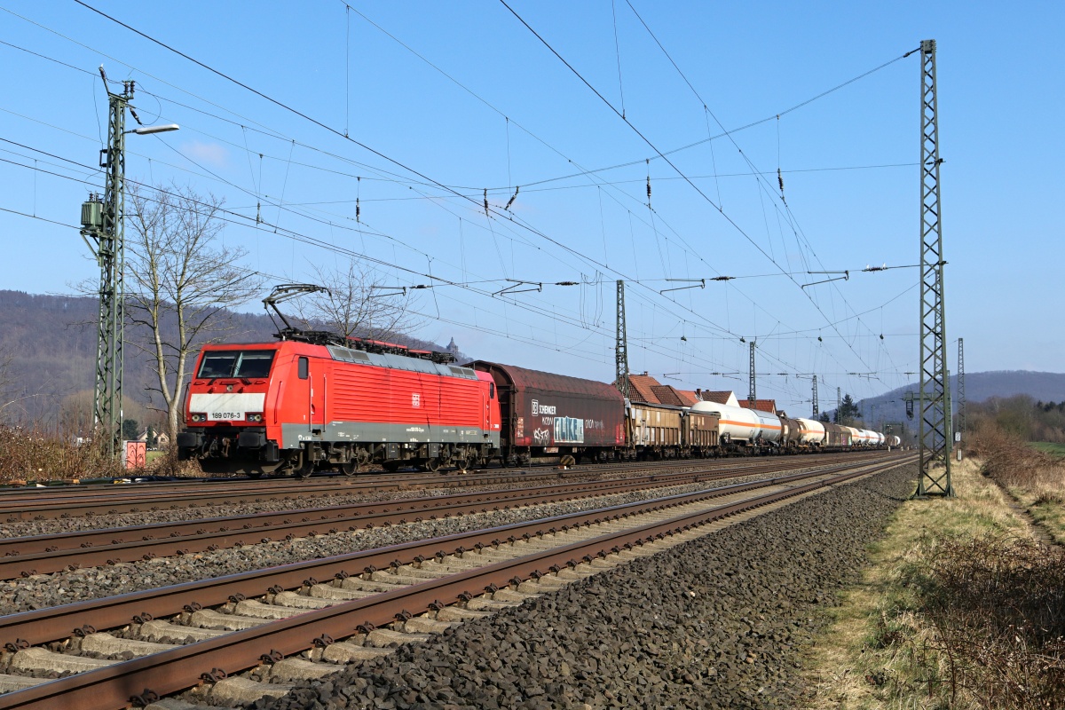 189 076-3 D-DB) passierte hier am 15.03.2017 Vennebeck mit einem Mischer Rtg.