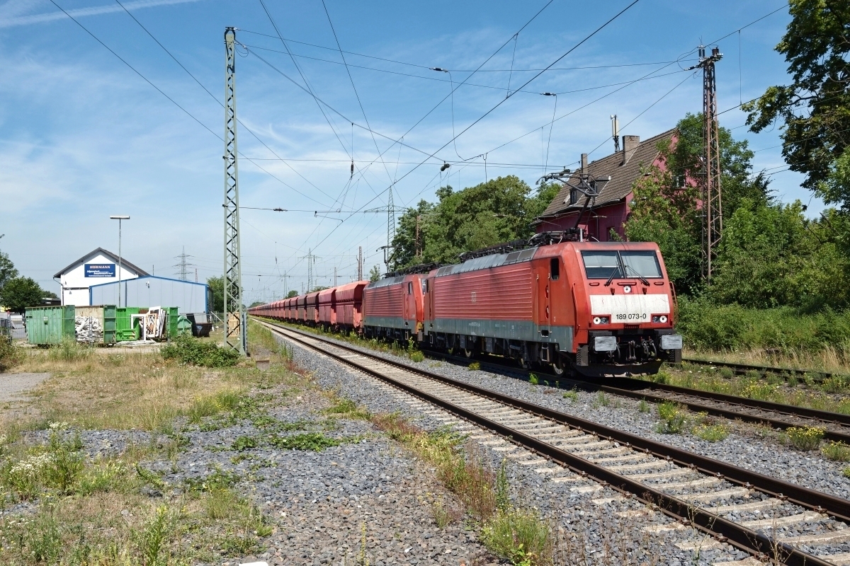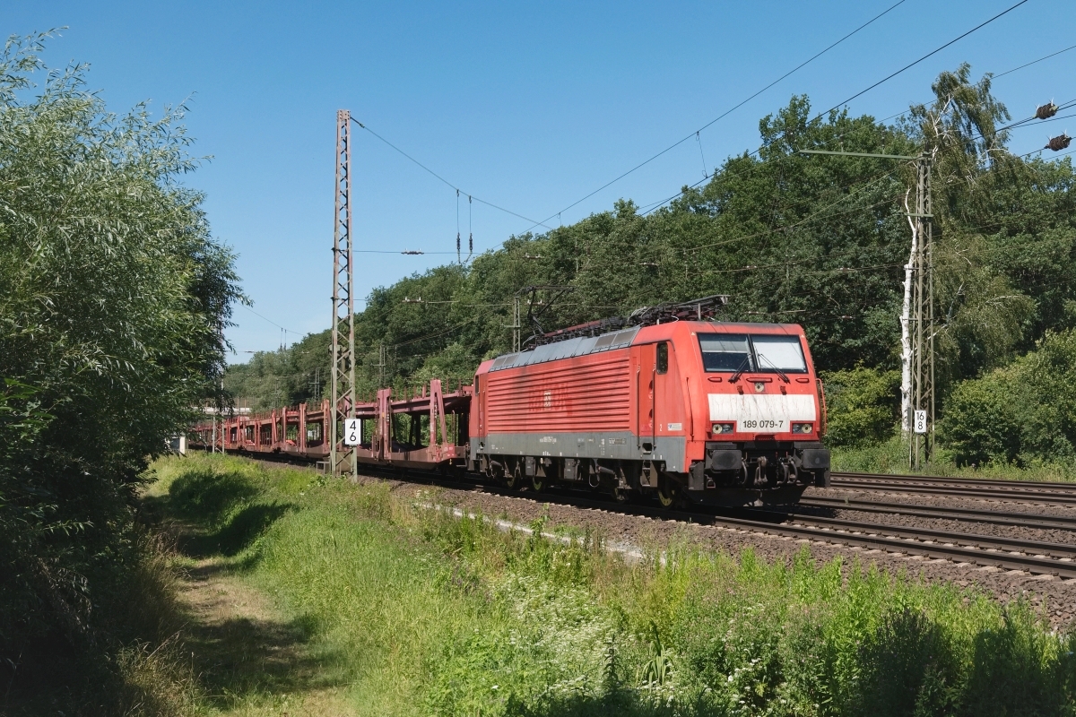 189 079-7 (NVR: 9180 6 189 079-7 D-DB) war hier am 16.08.2019 bei Dülken (KDUL) mit 189 073-0 (NVR: 9180 6 189 073-0 D-DB) und einem Falns Vollerz