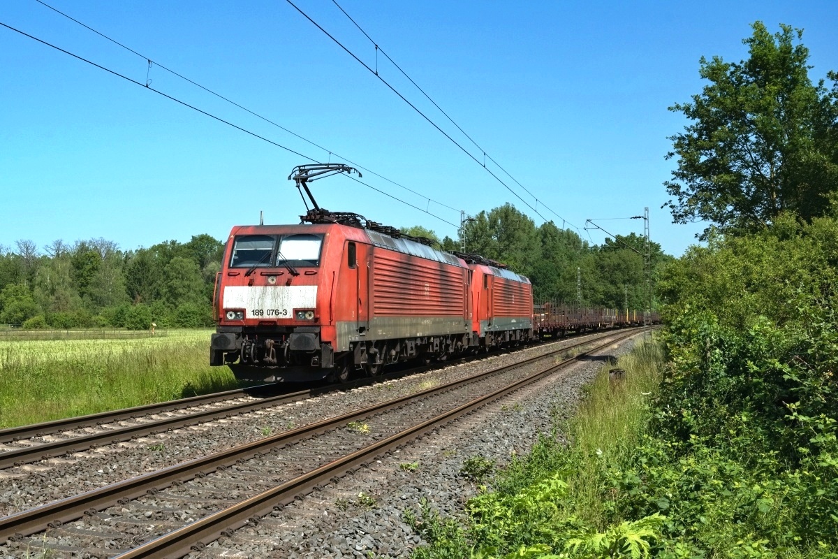 Dto. 189 076-3 am 06.06.2023 bei Lintorf (ELIT) mit Wagenlok 189 070-6