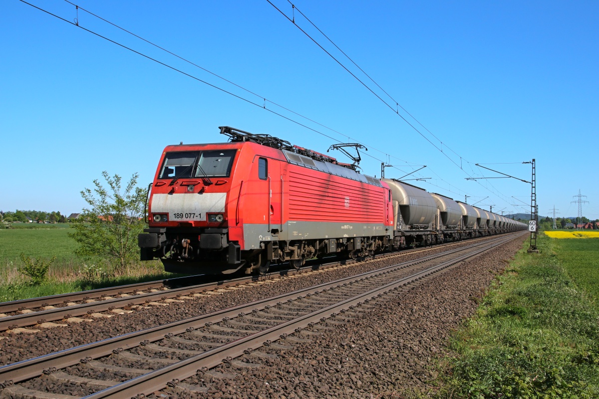 189 077-1 D-DB) passierte hier am 06.05.2018 Dankersen mit einem VTG Uacns Ganzzug Rtg. Löhne/Westen unterwegs...