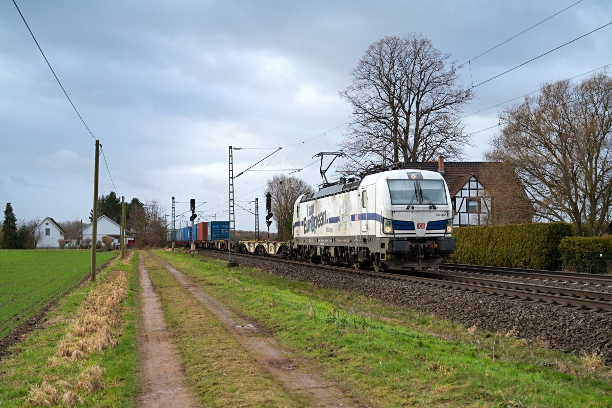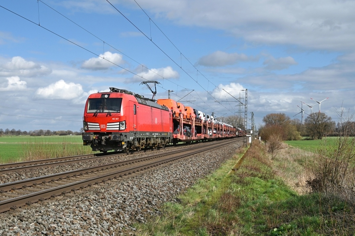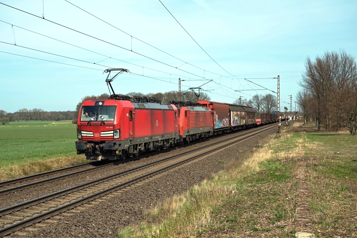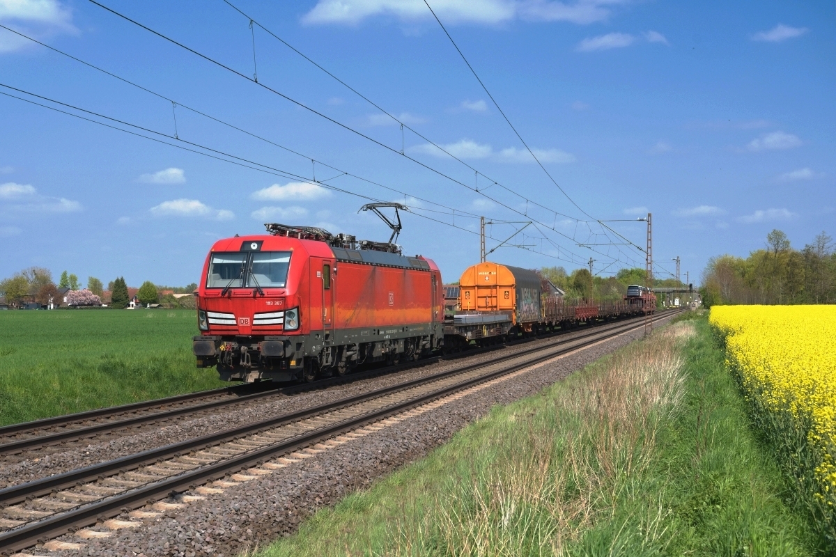 Dto. 193 361-5 am 27.03.2020 bei Lindhorst (HLH) Vornhagen auf der Rückfahrt
