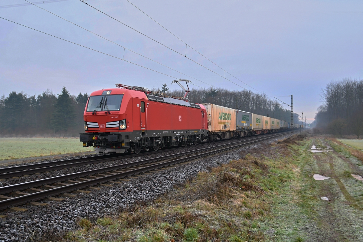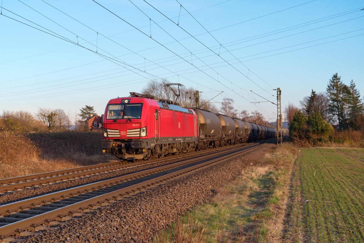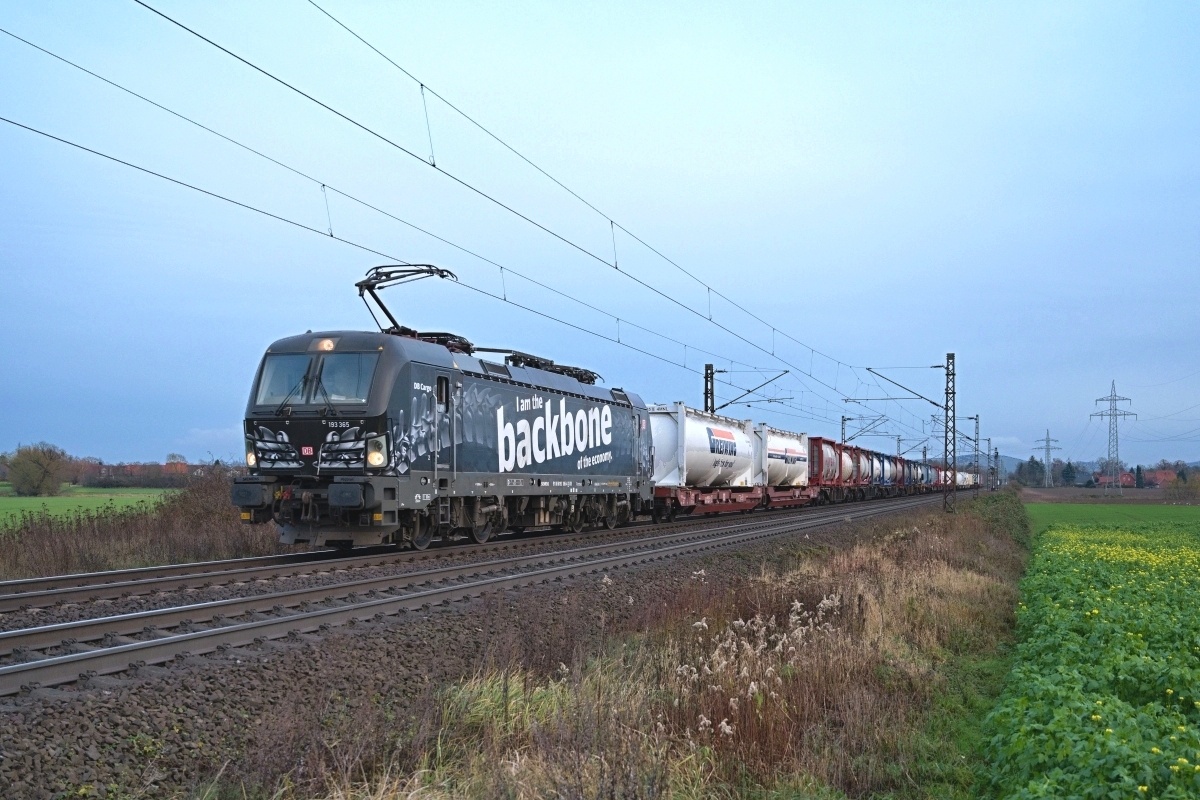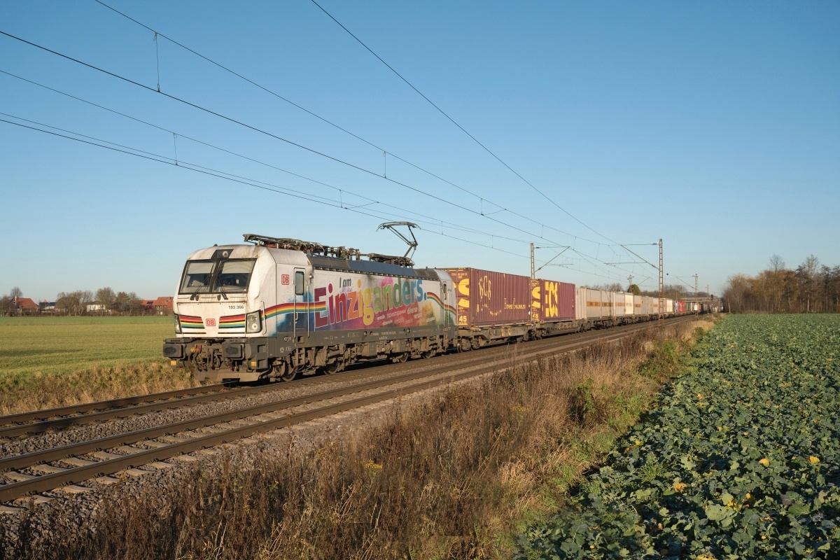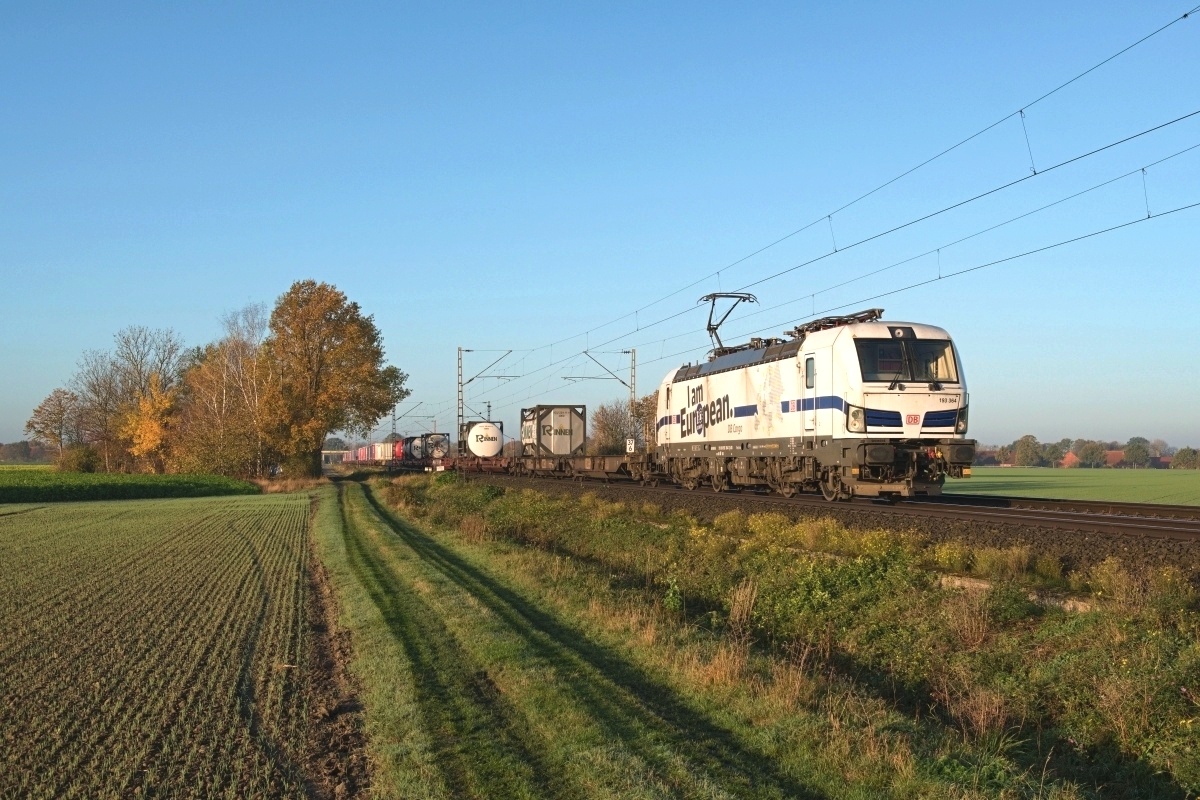 Dto. 193 361-5 am 18.11.2020 im Abendlicht bei Lindhorst (HLH) Vornhagen mit