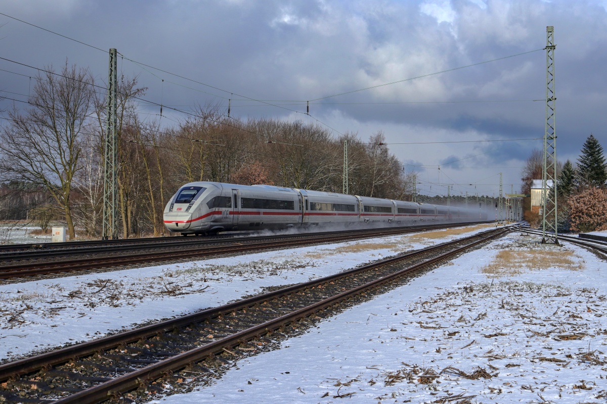 ICE Tz 9002 passierte hier am 25.02.2018 Isernhagen bei leichtem Schneefall